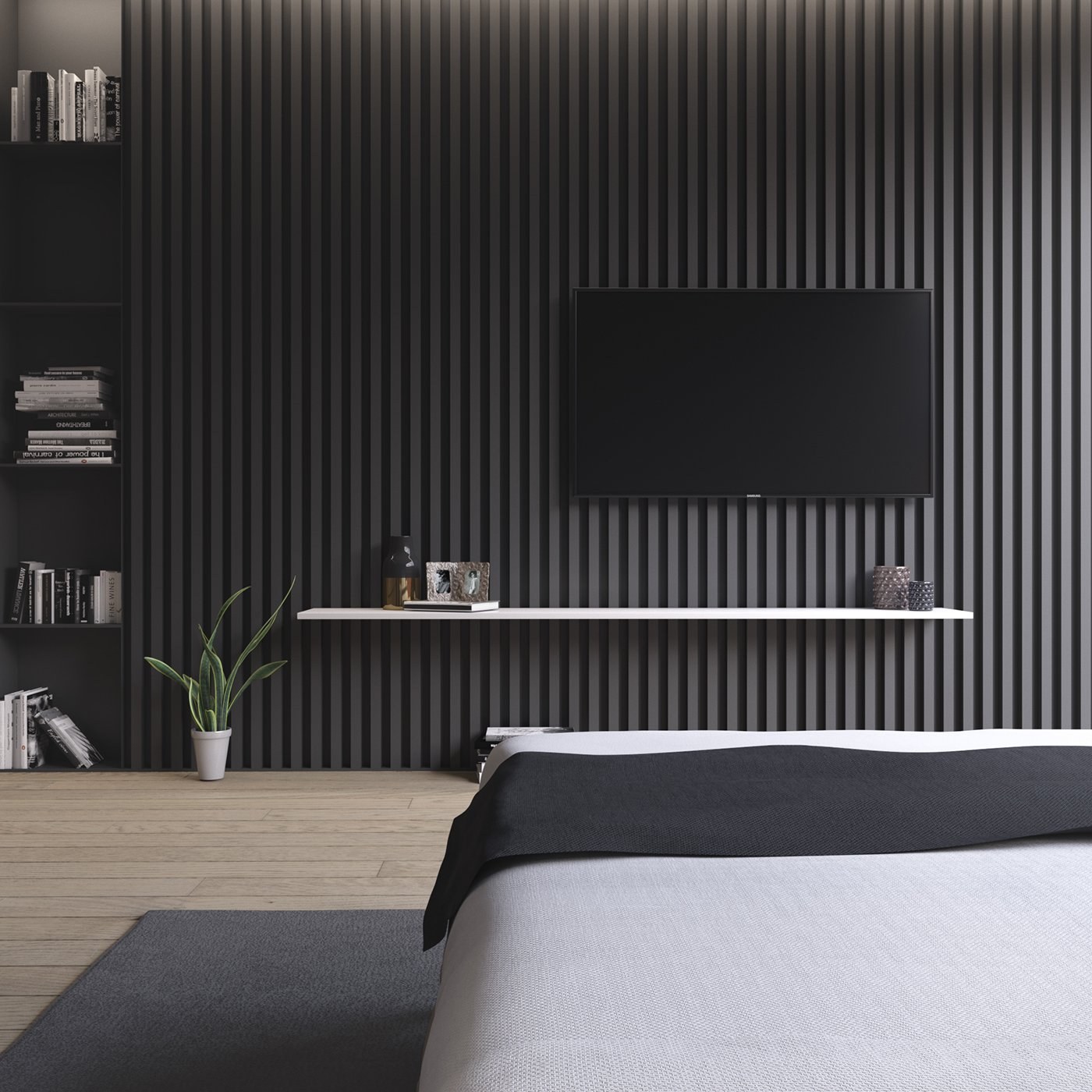 Рейки в интерьере спальни