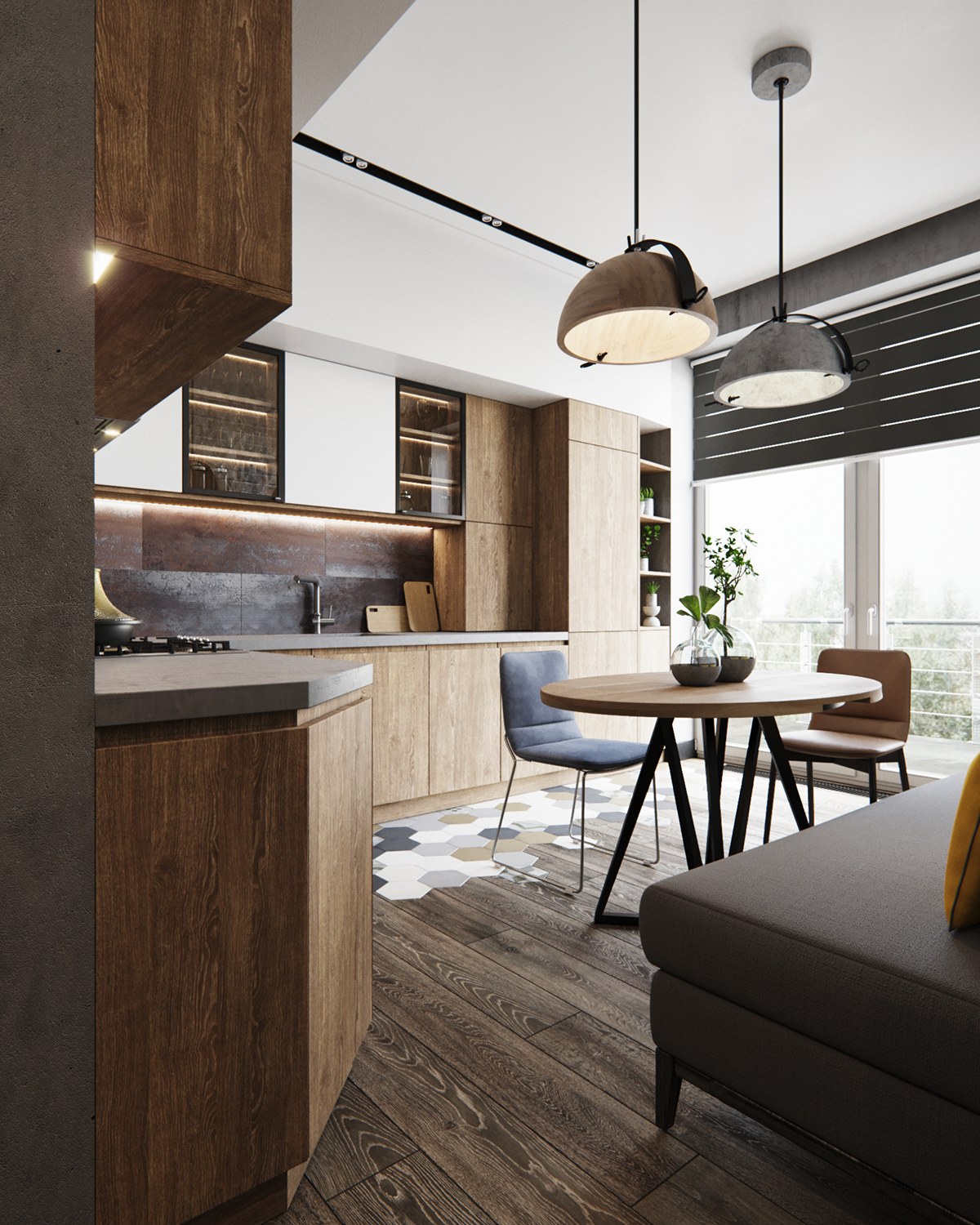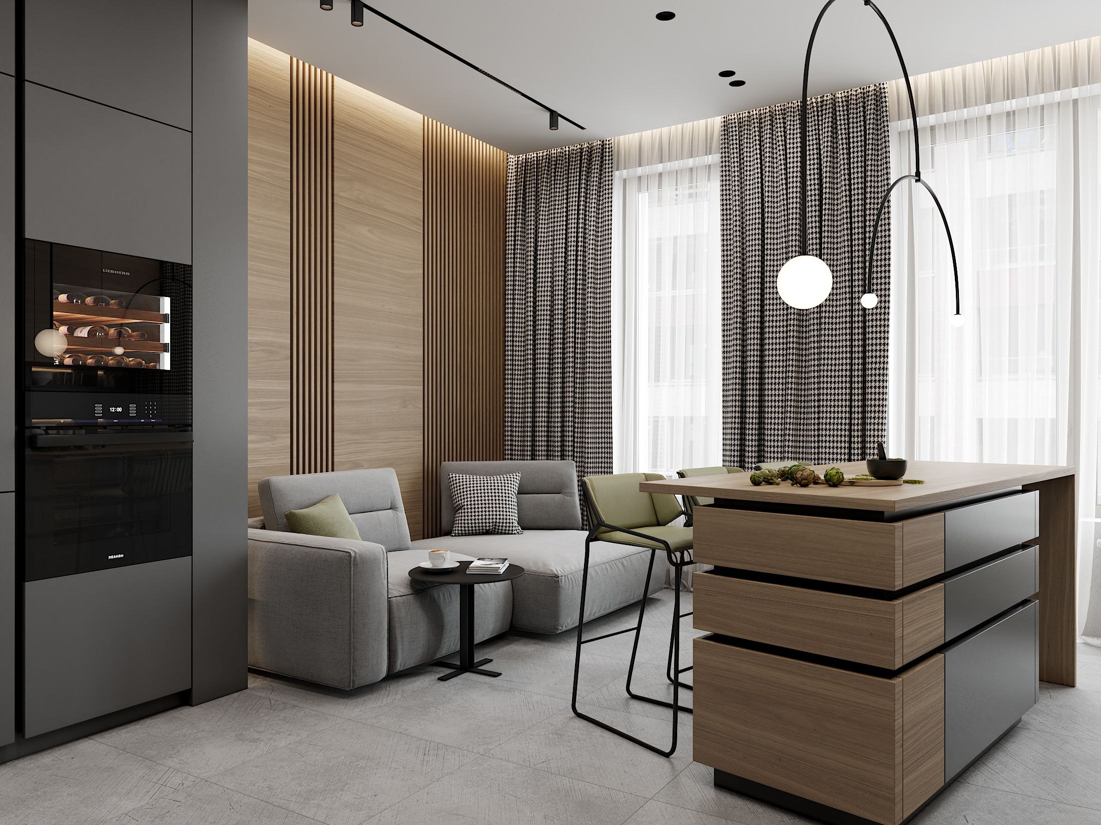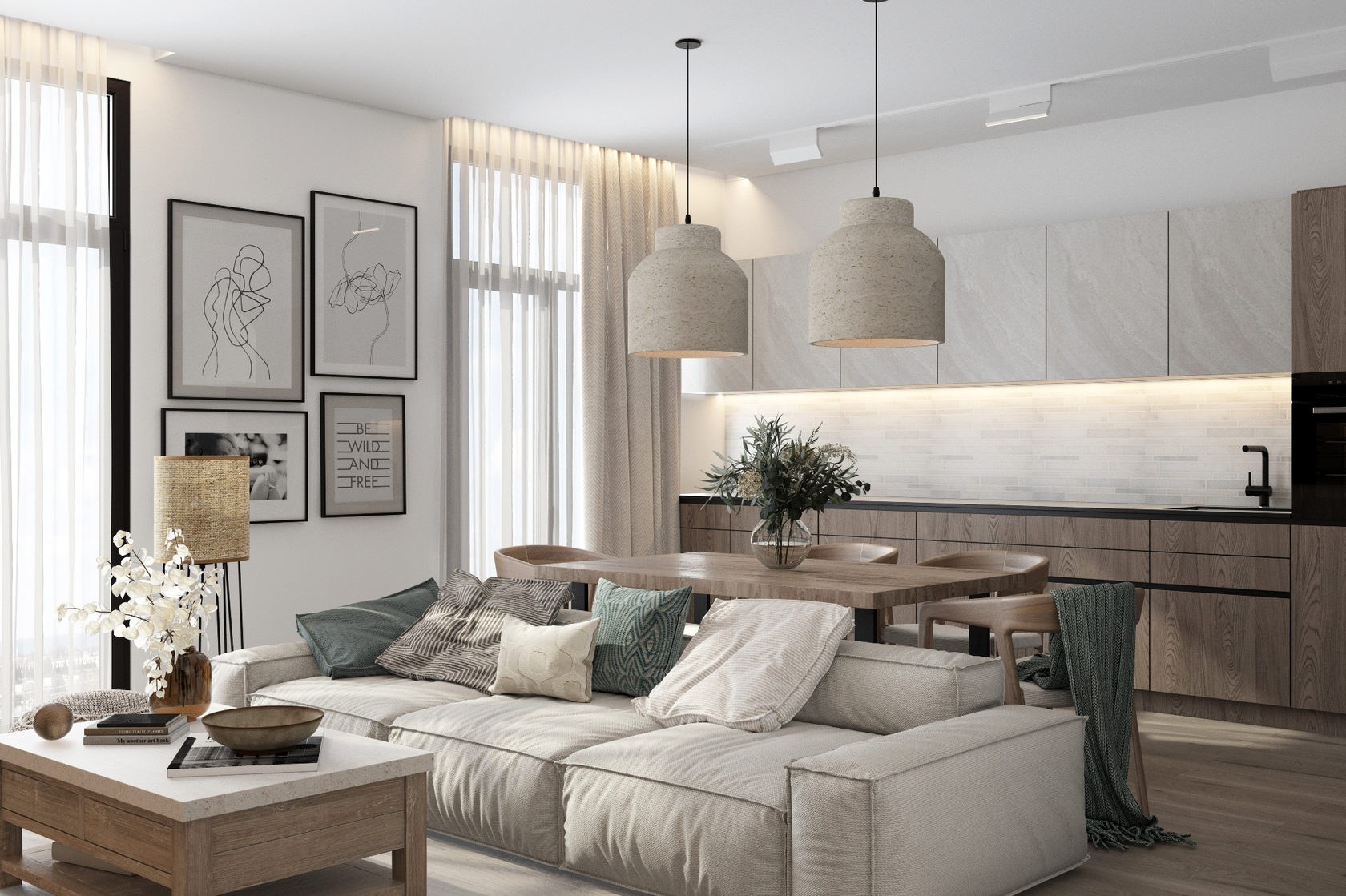 Эко Минимализм кухня гостиная