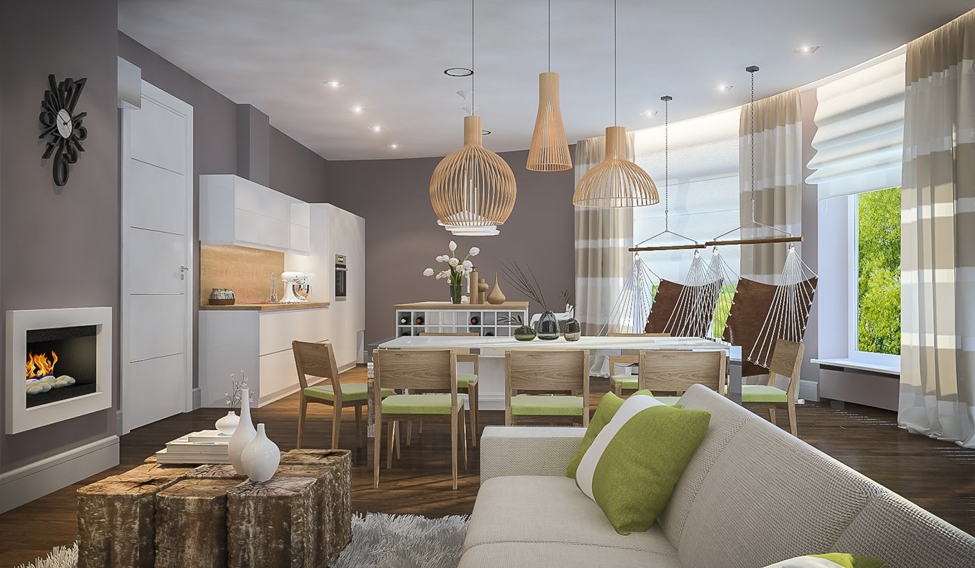 Экостиль кухня гостиная