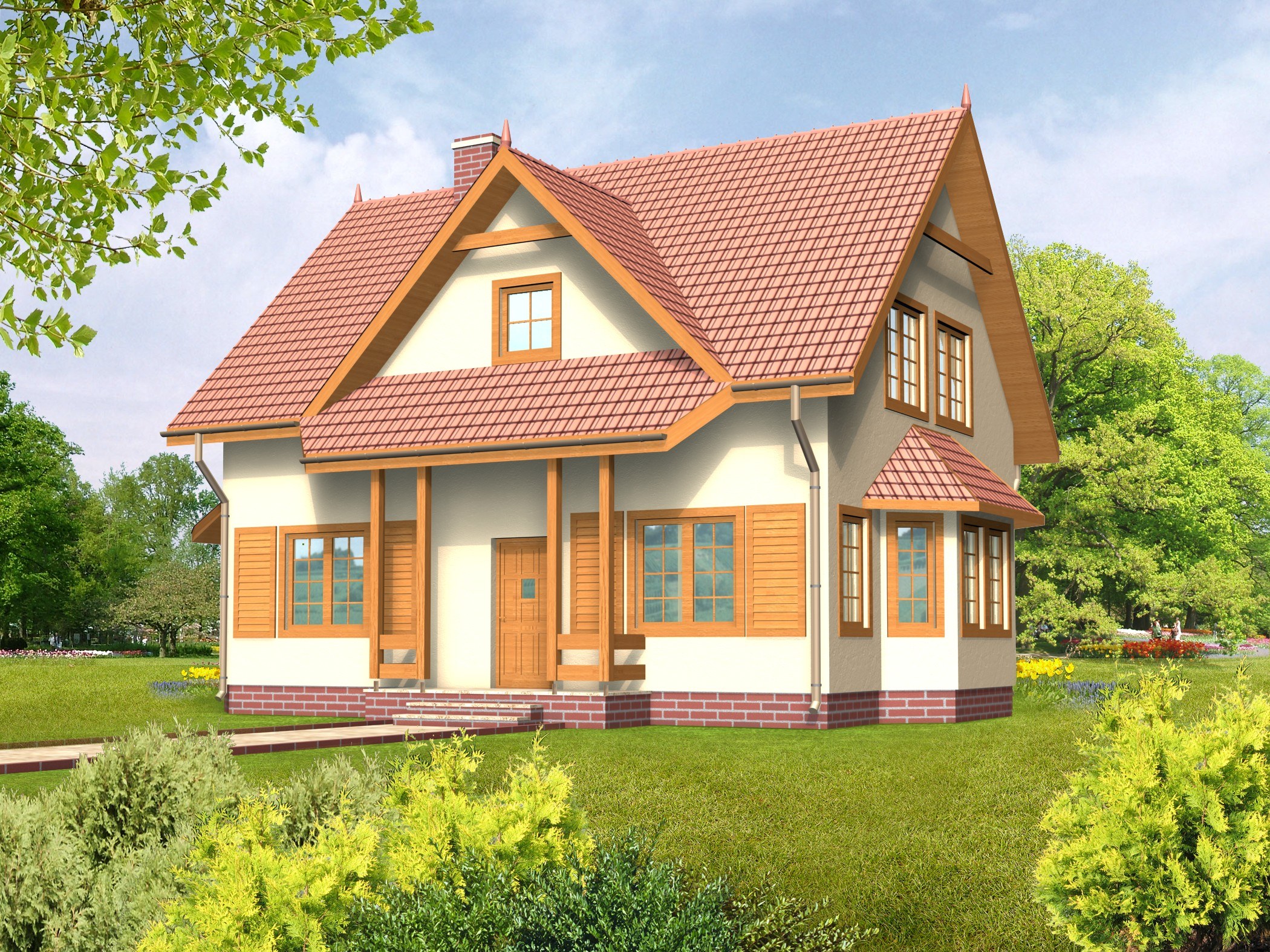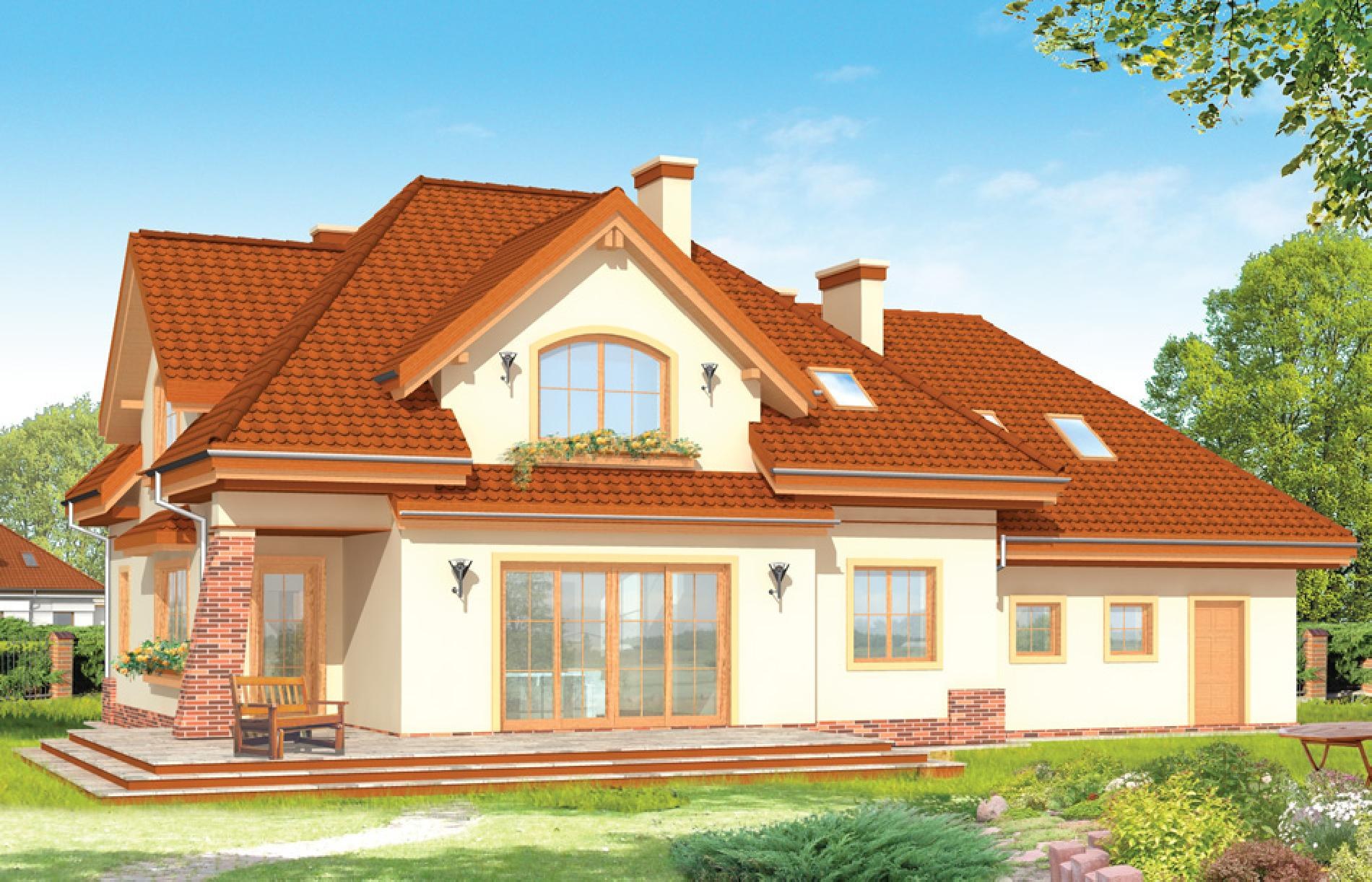 Красивый фасад дома с мансардой