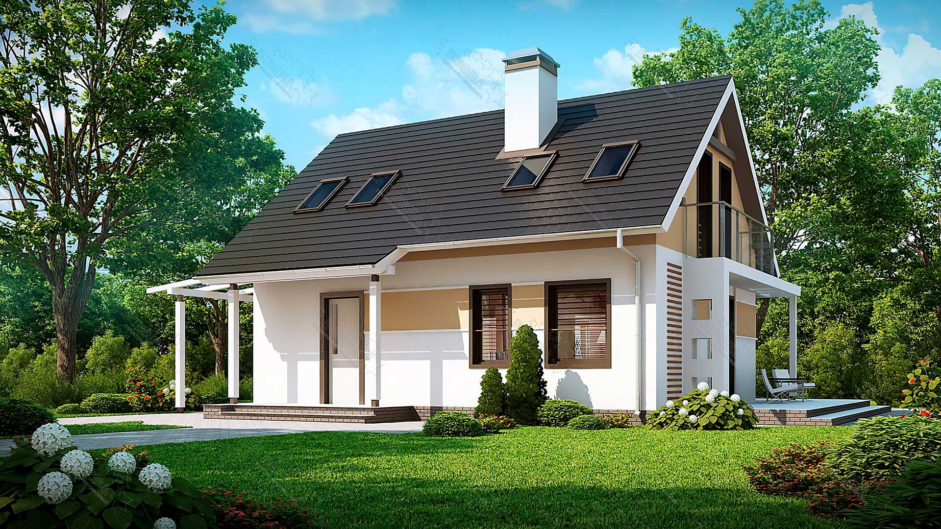 Небольшой дачный дом с мансардой и террасой