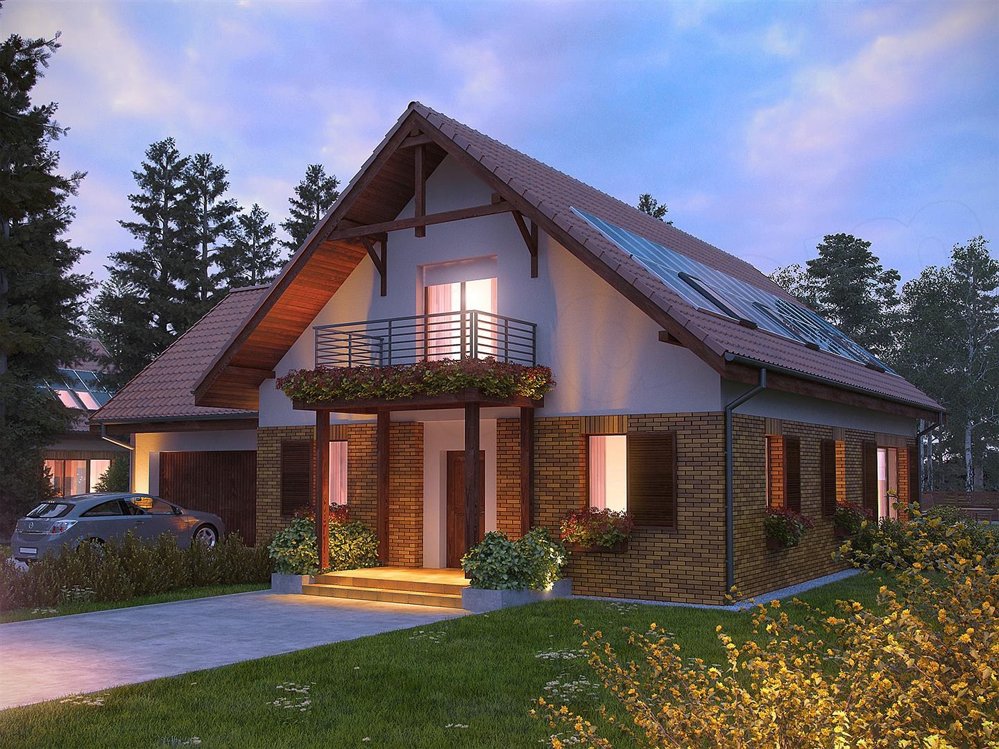 Проект дома с мансардой и гаражом