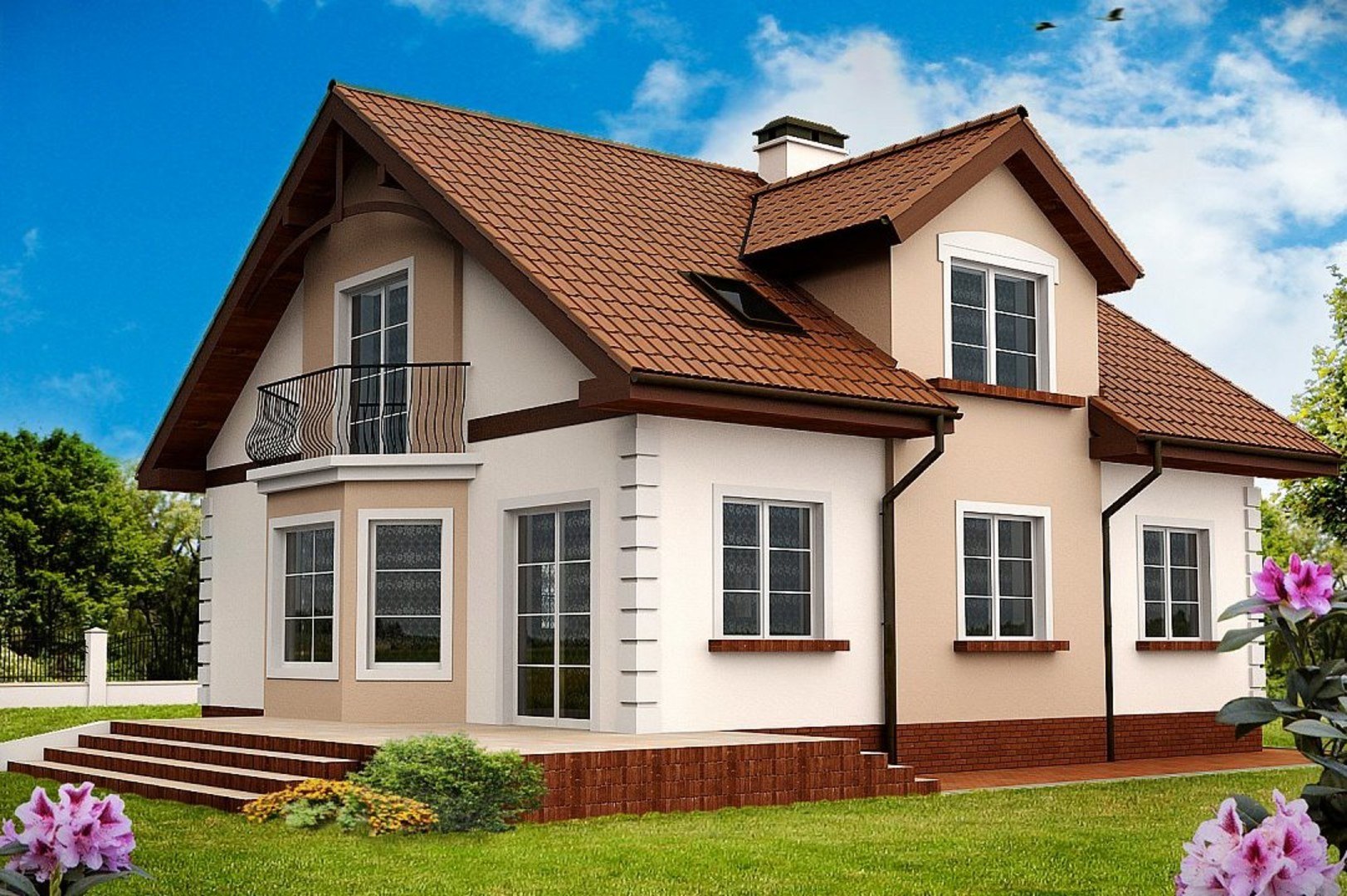 Дома с мансардой и балконом