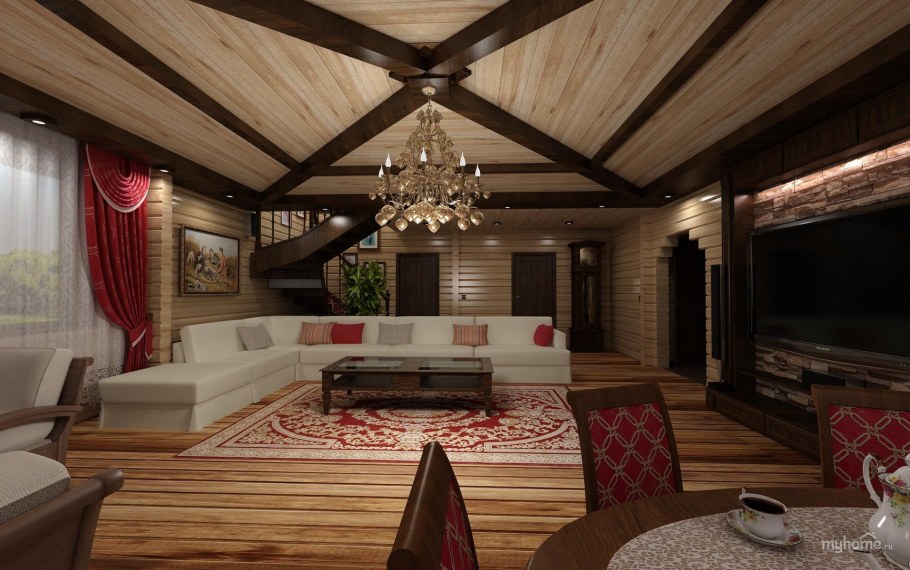 Гостиная дом из бруса (51 фото)