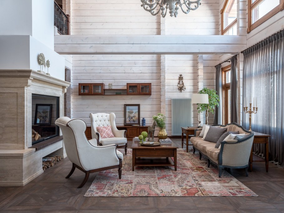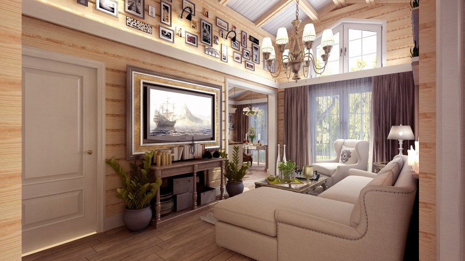 Интерьер гостиной в деревянном доме