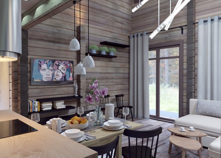 Интерьеры в домах из клееного бруса в скандинавском стиле
