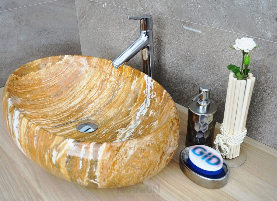 Деревянная тумба под круглую раковину в интерьере (61 фото)