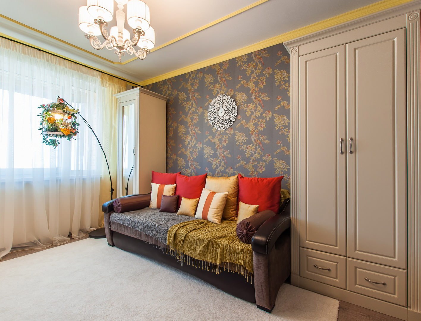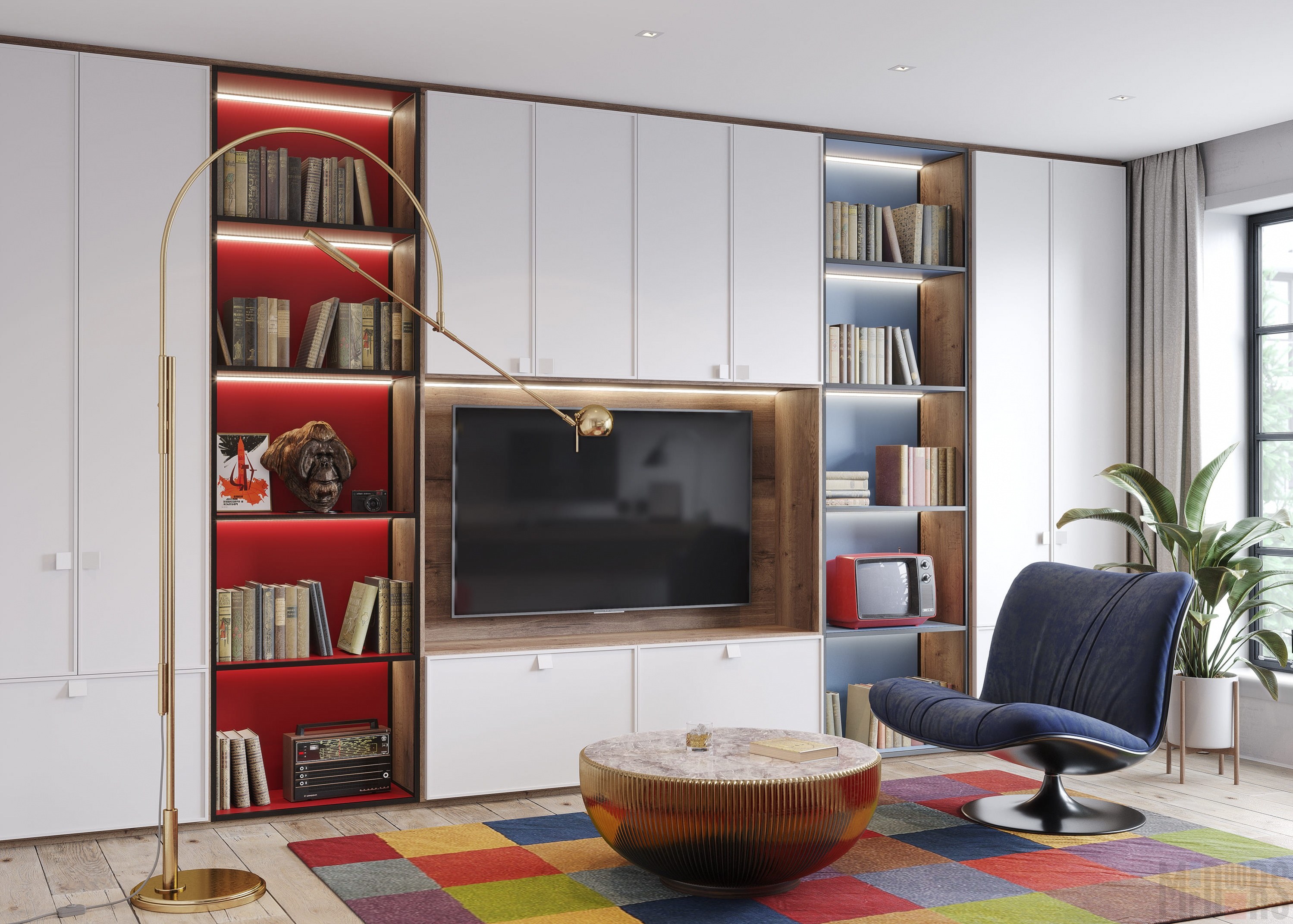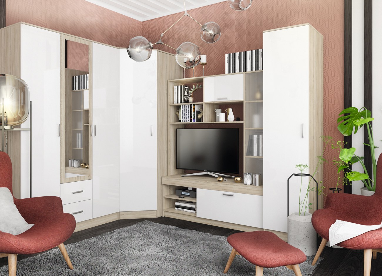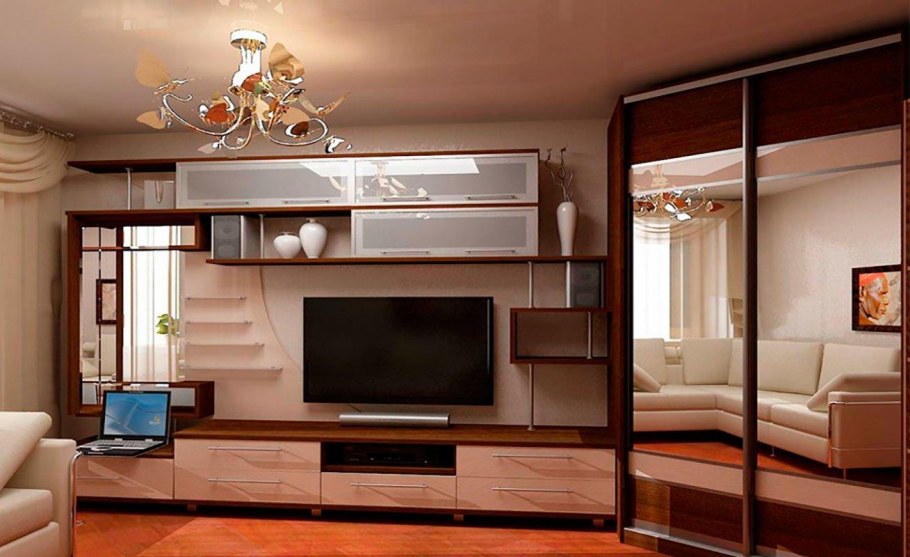 Маленькая гостиная встроенная мебель в интерьере (55 фото)