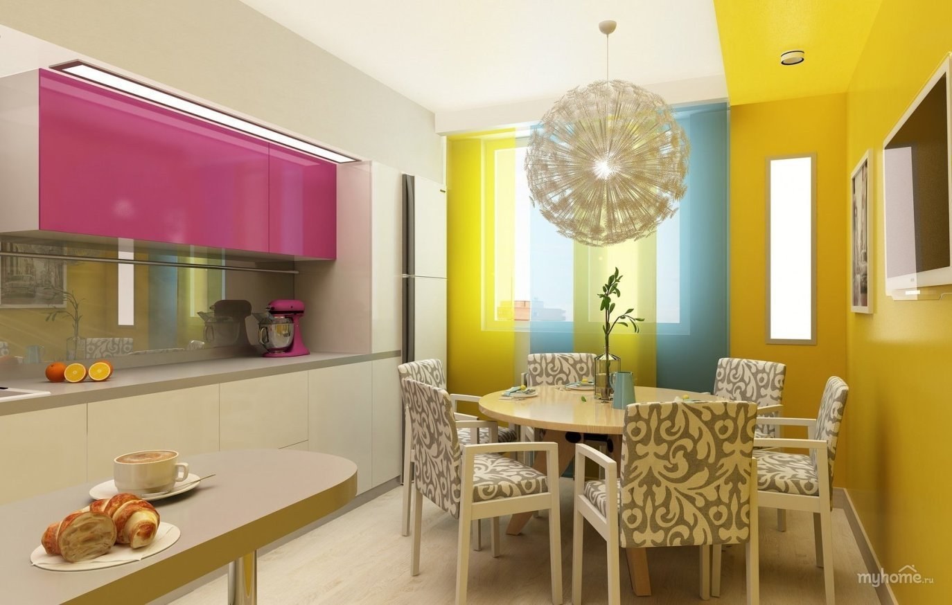 Розовые стены на кухне