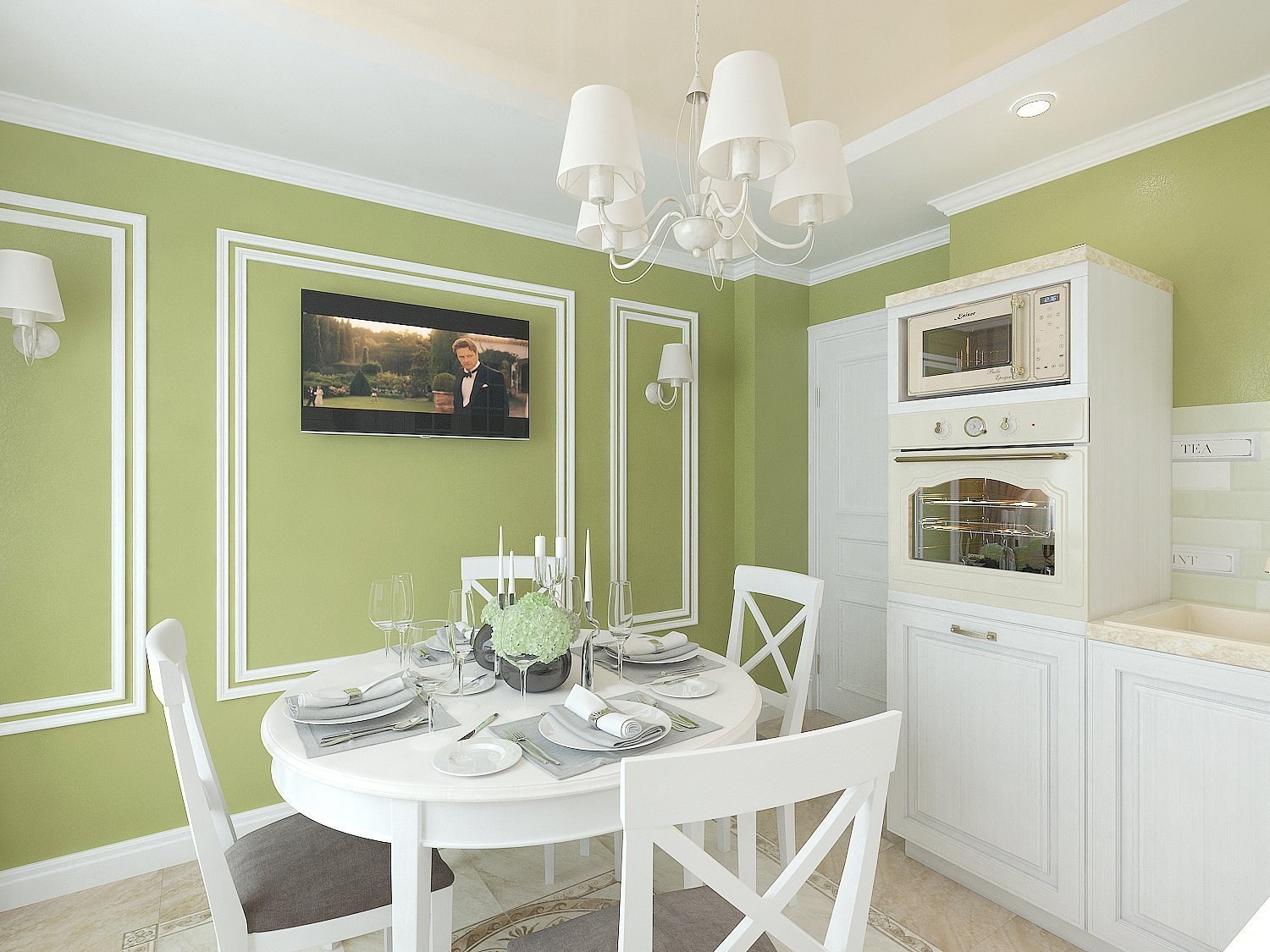 Оливковые стены на кухне