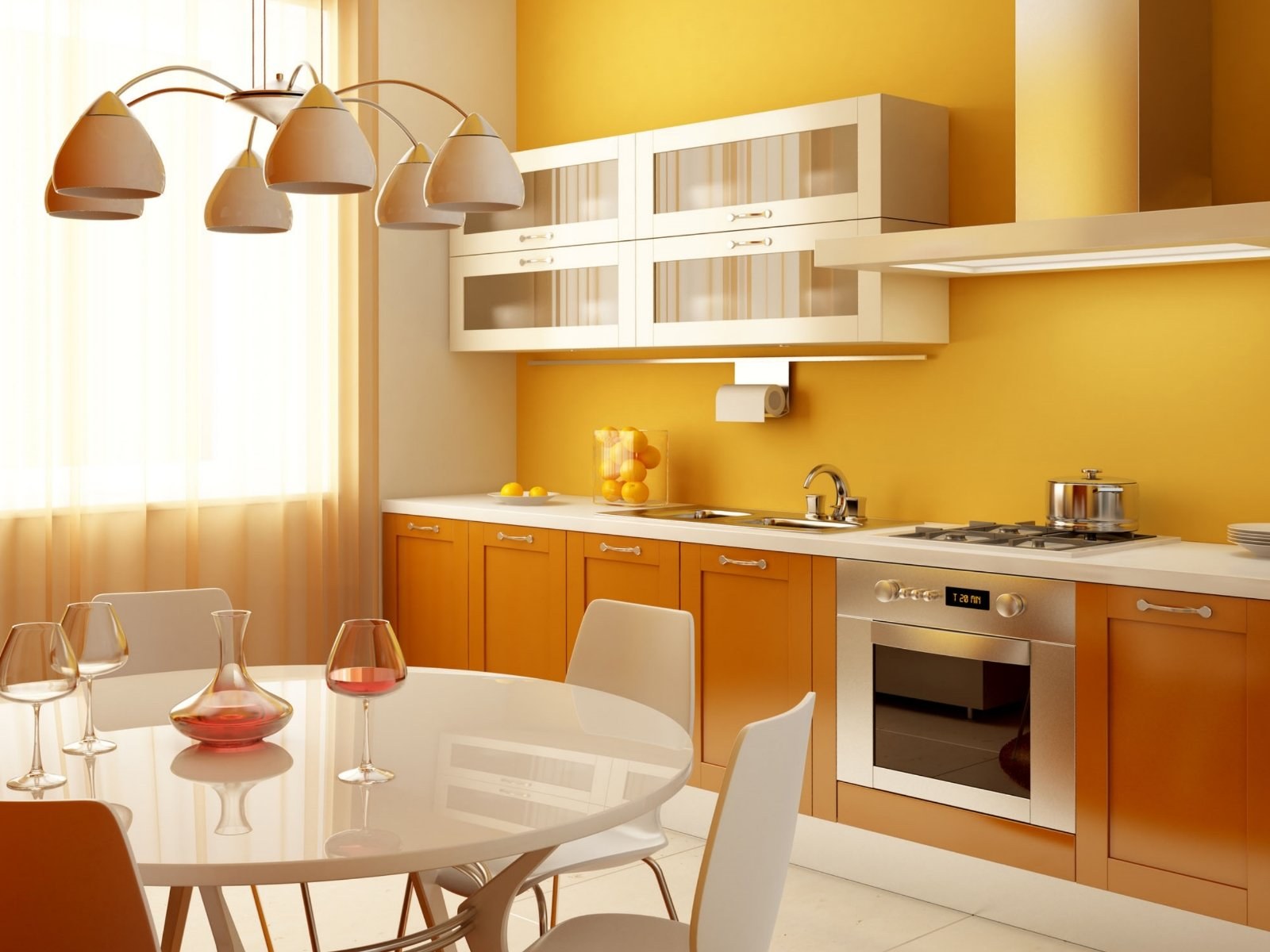 Оранжевый цвет стен на кухне