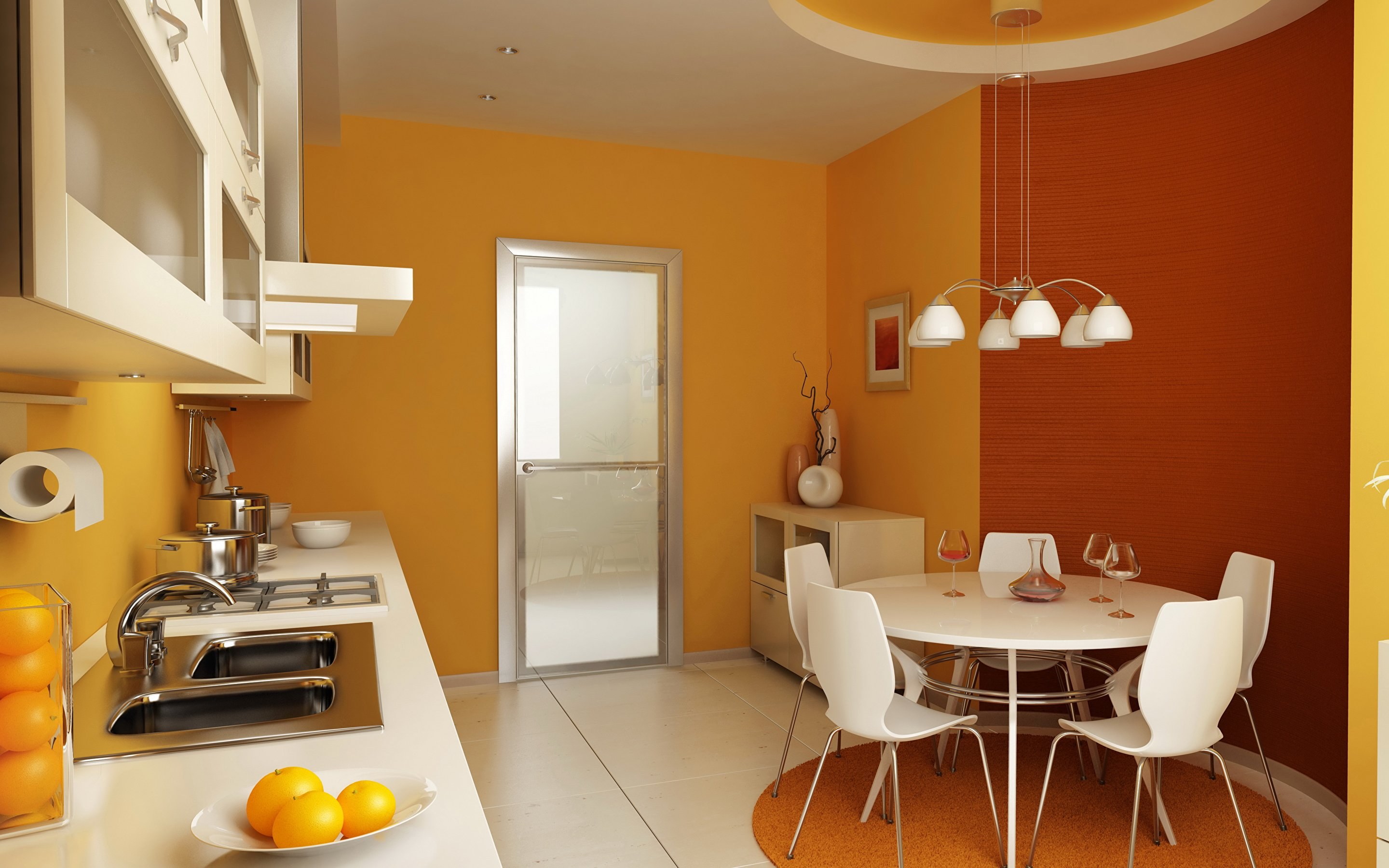 Оранжевый цвет в столовой