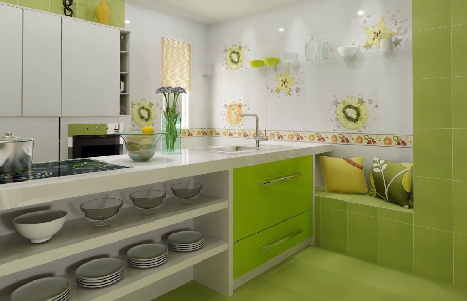 Кухня с салатовыми акцентами