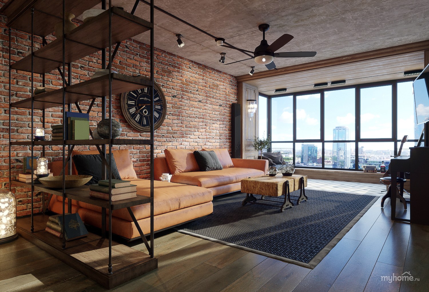 Интерьер с элементами лофта