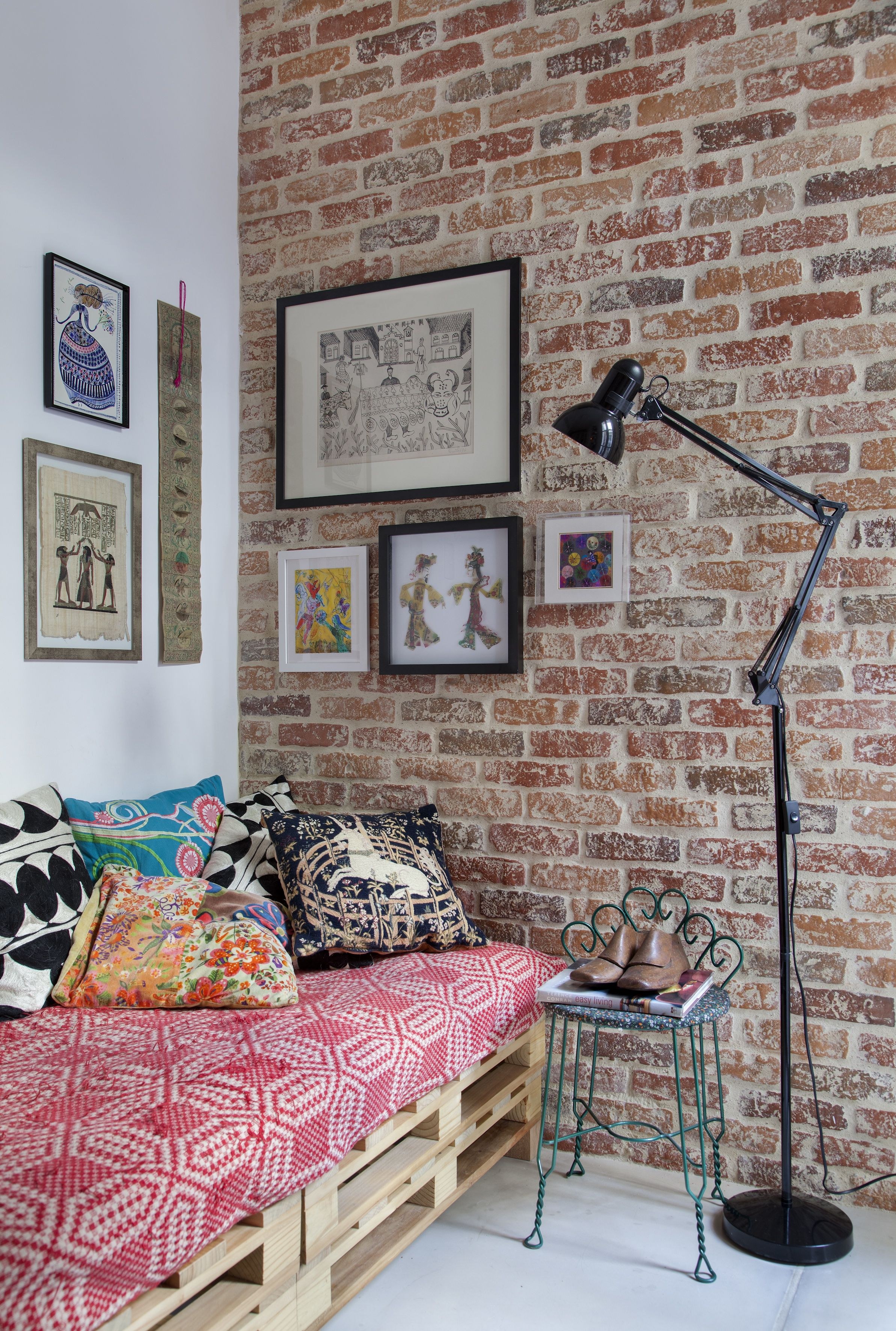 Спальня в стиле лофт с кирпичной стеной