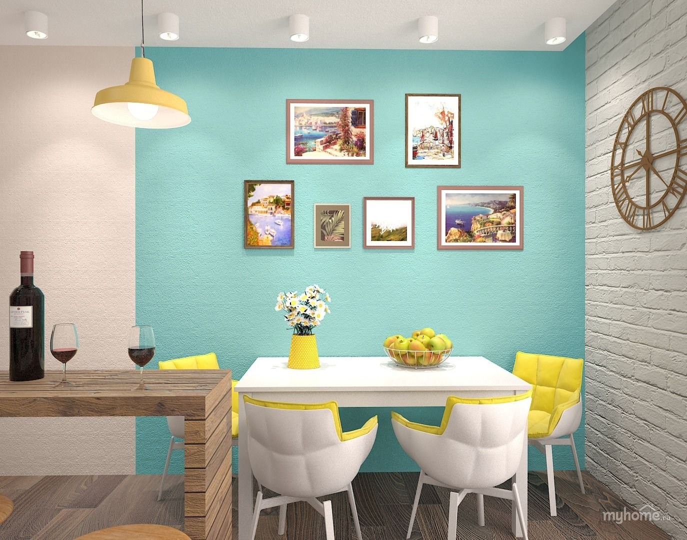Бирюзовые стены на кухне