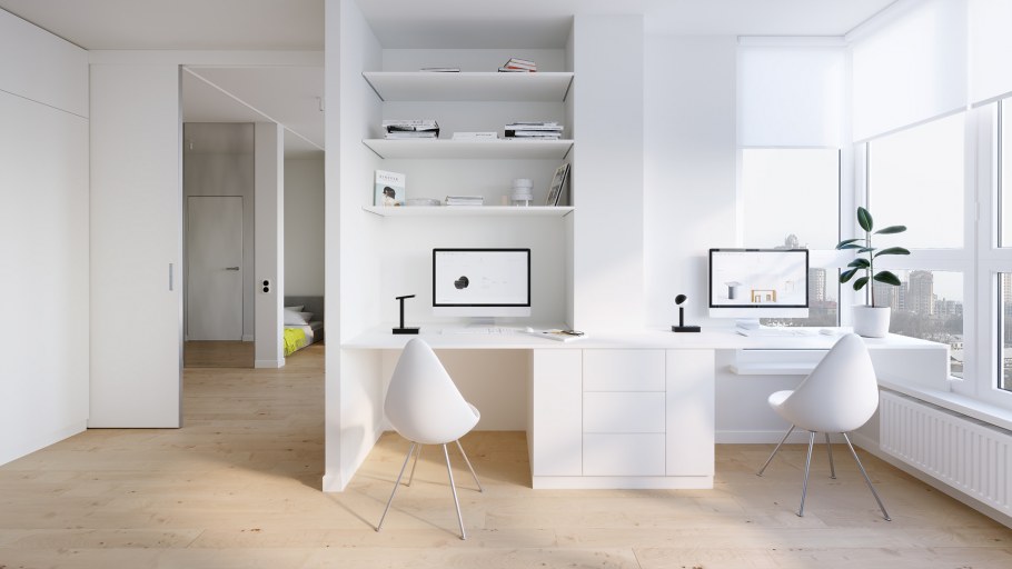Белый интерьер спальни кабинета