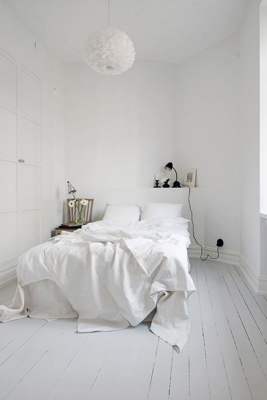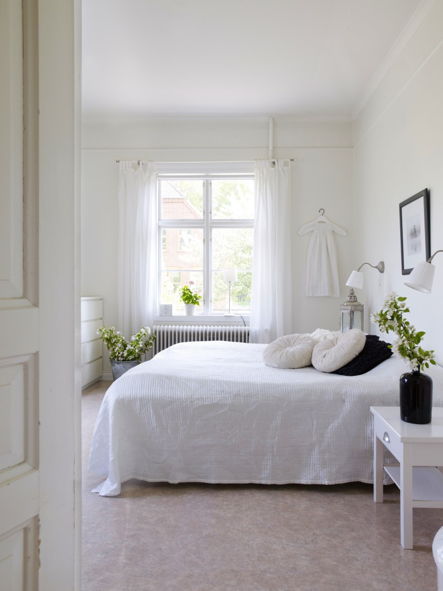Спальня с белыми стенами