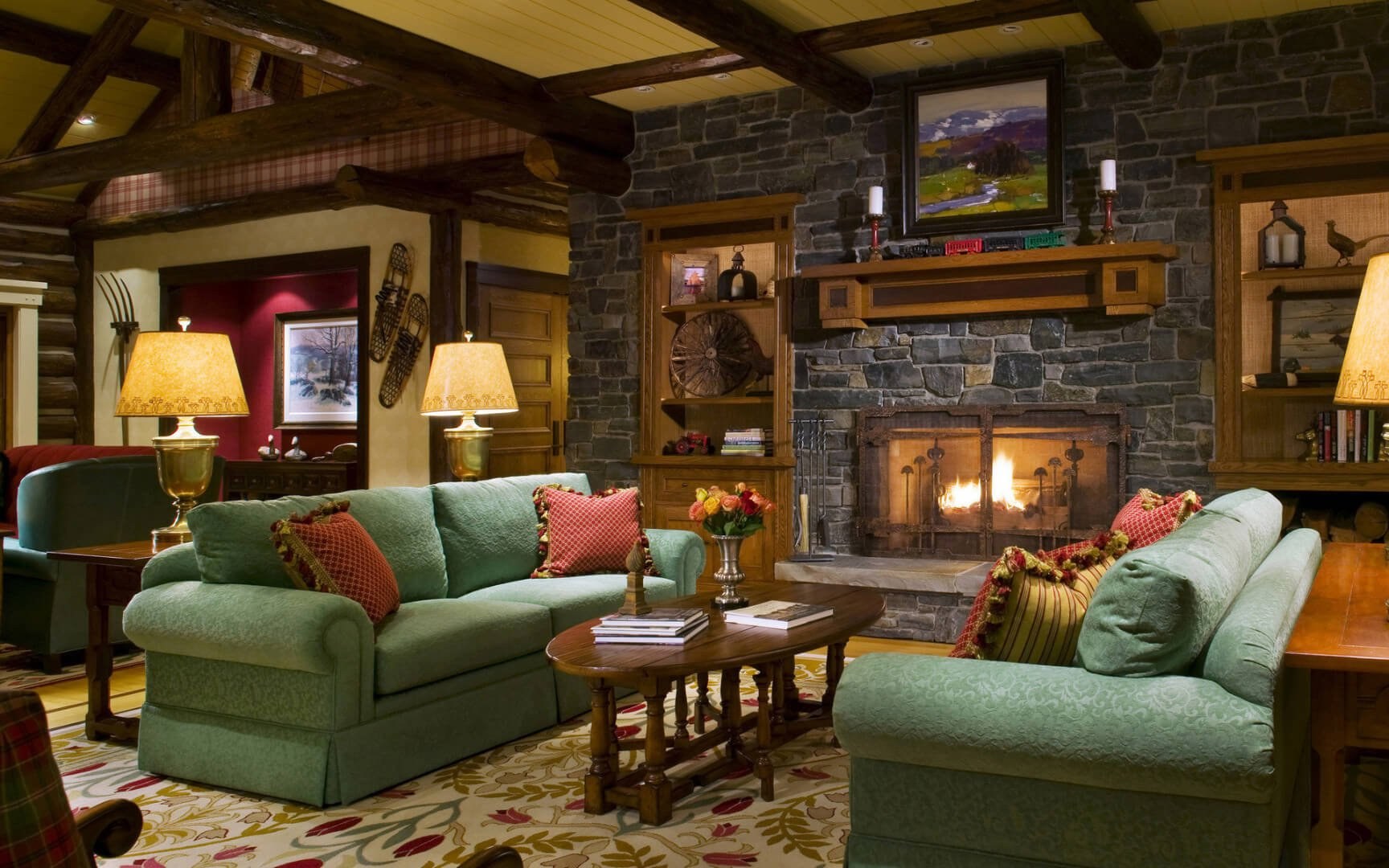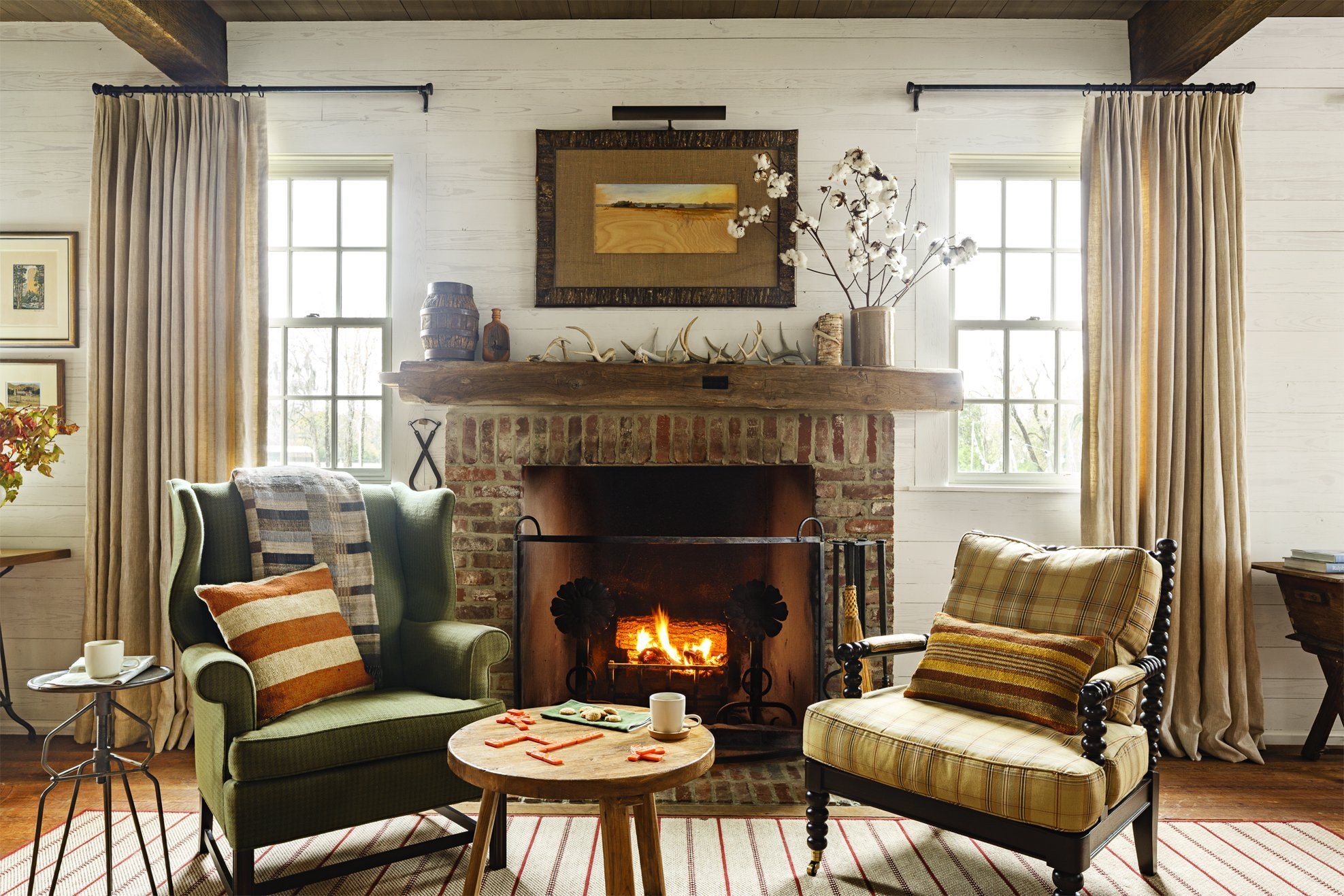 Гостиная с камином в стиле Кантри