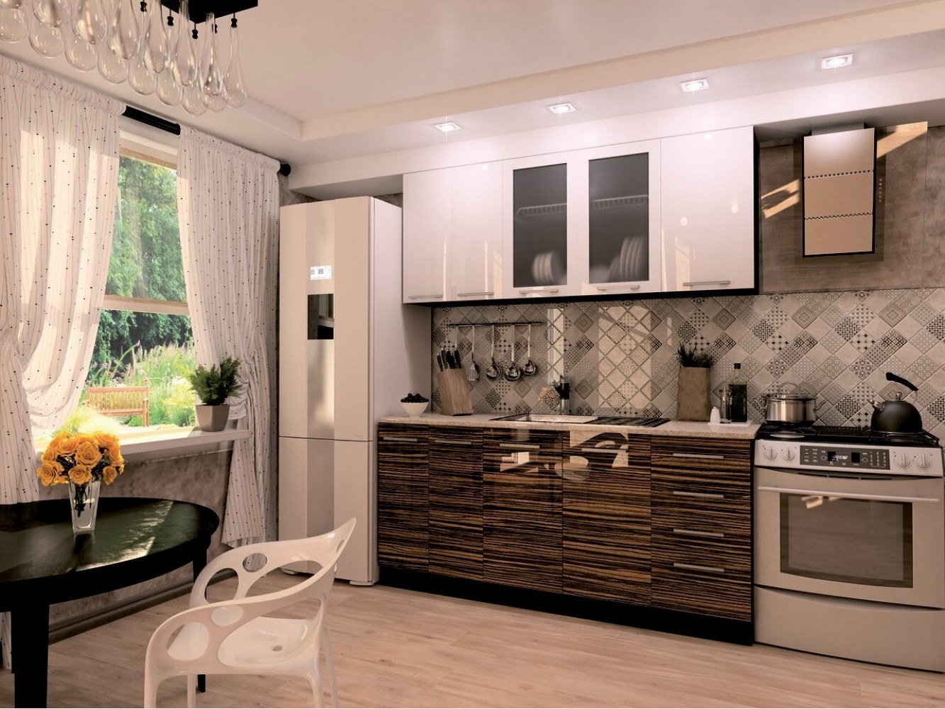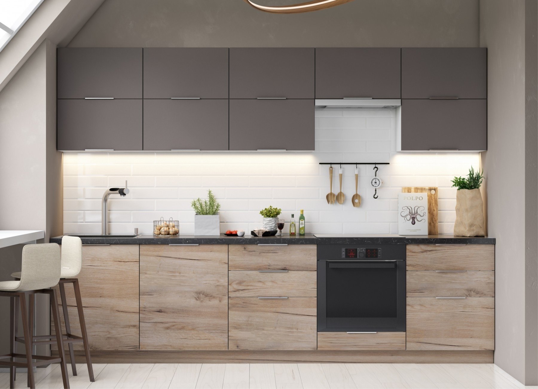 Двухцветная кухня под дерево