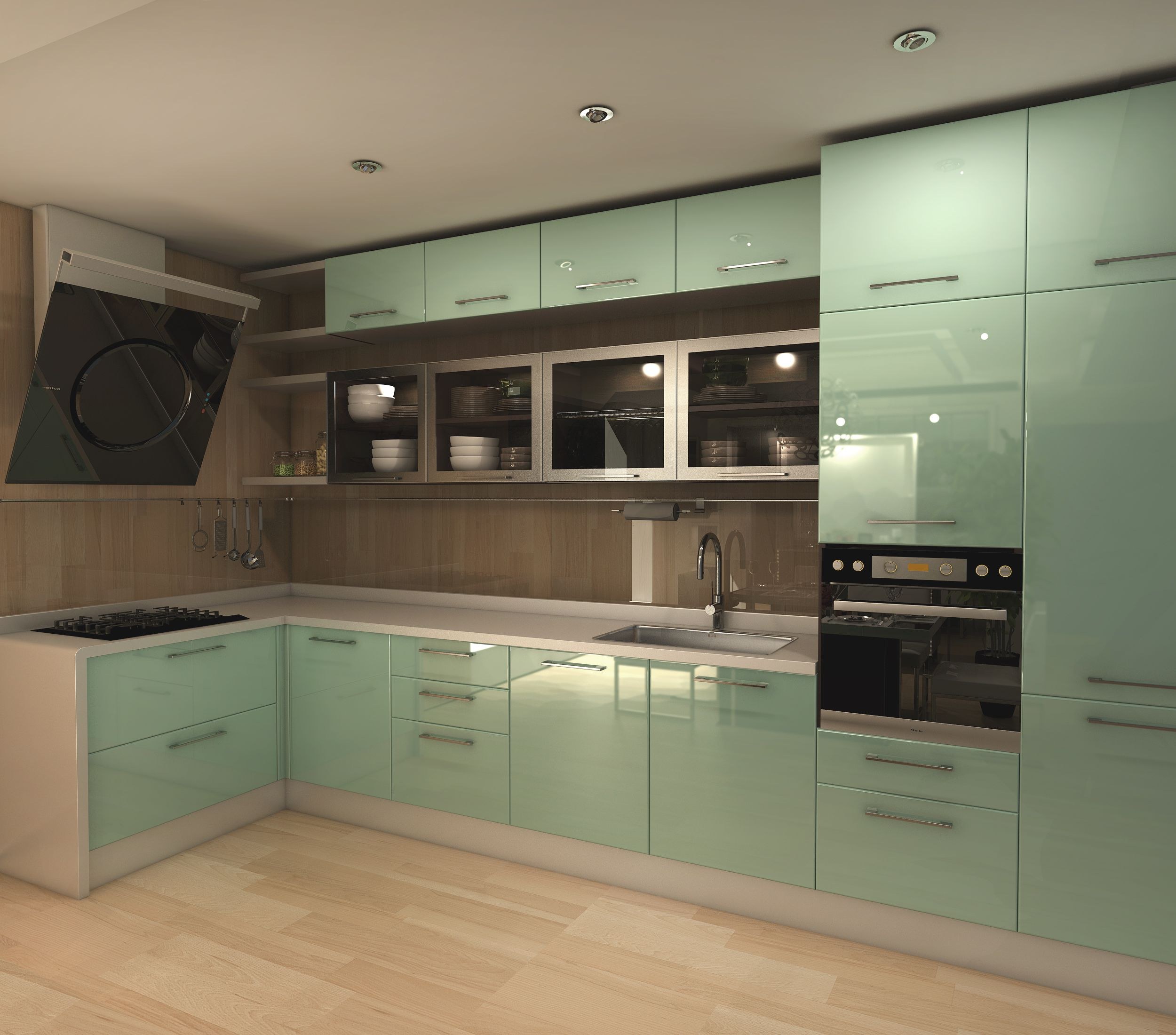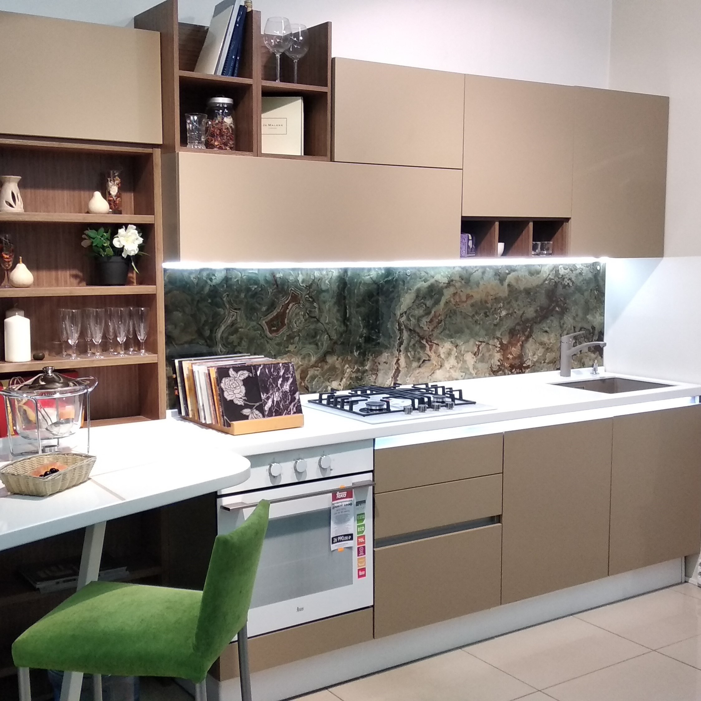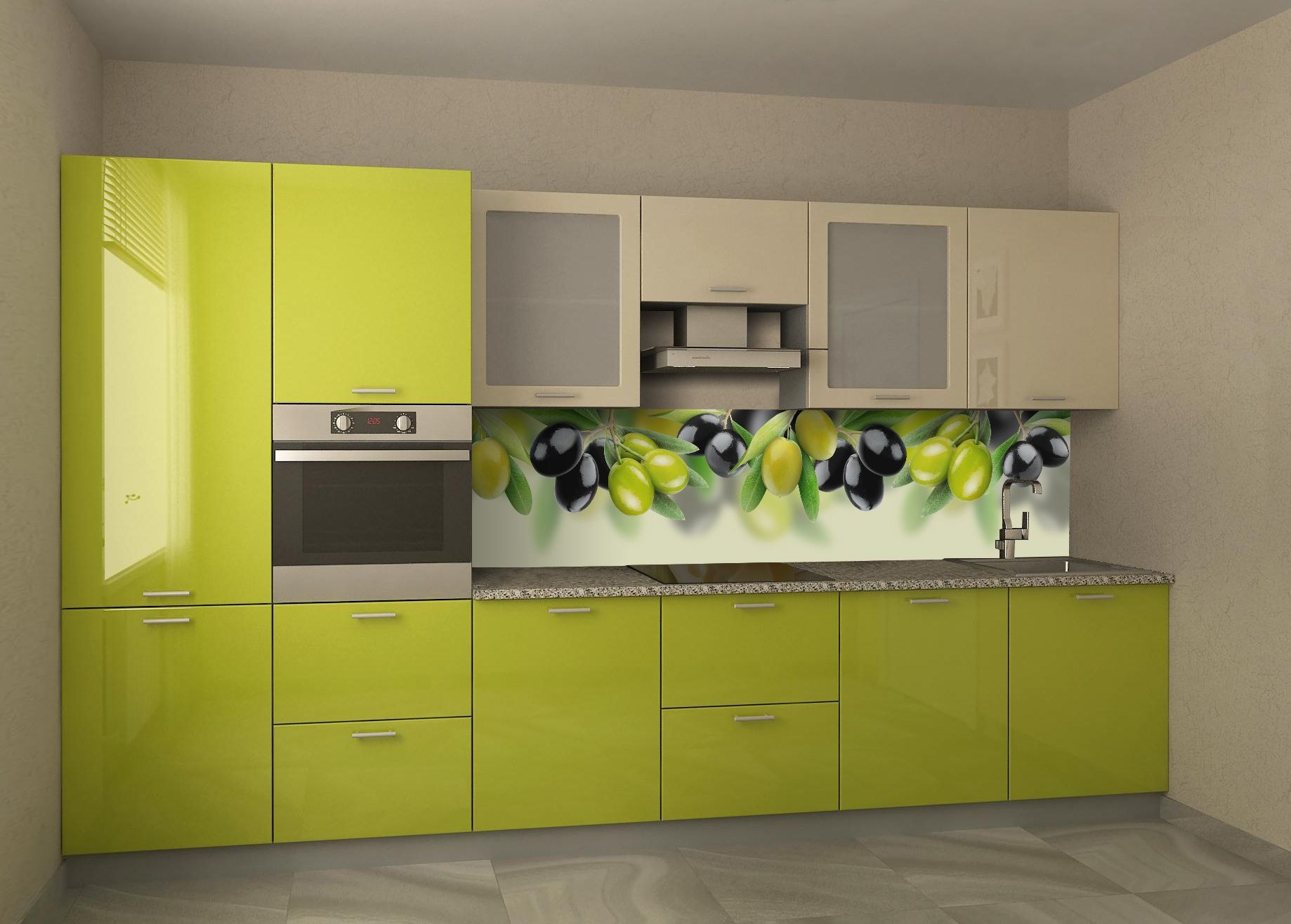 Глянцевые фасады олива кухни