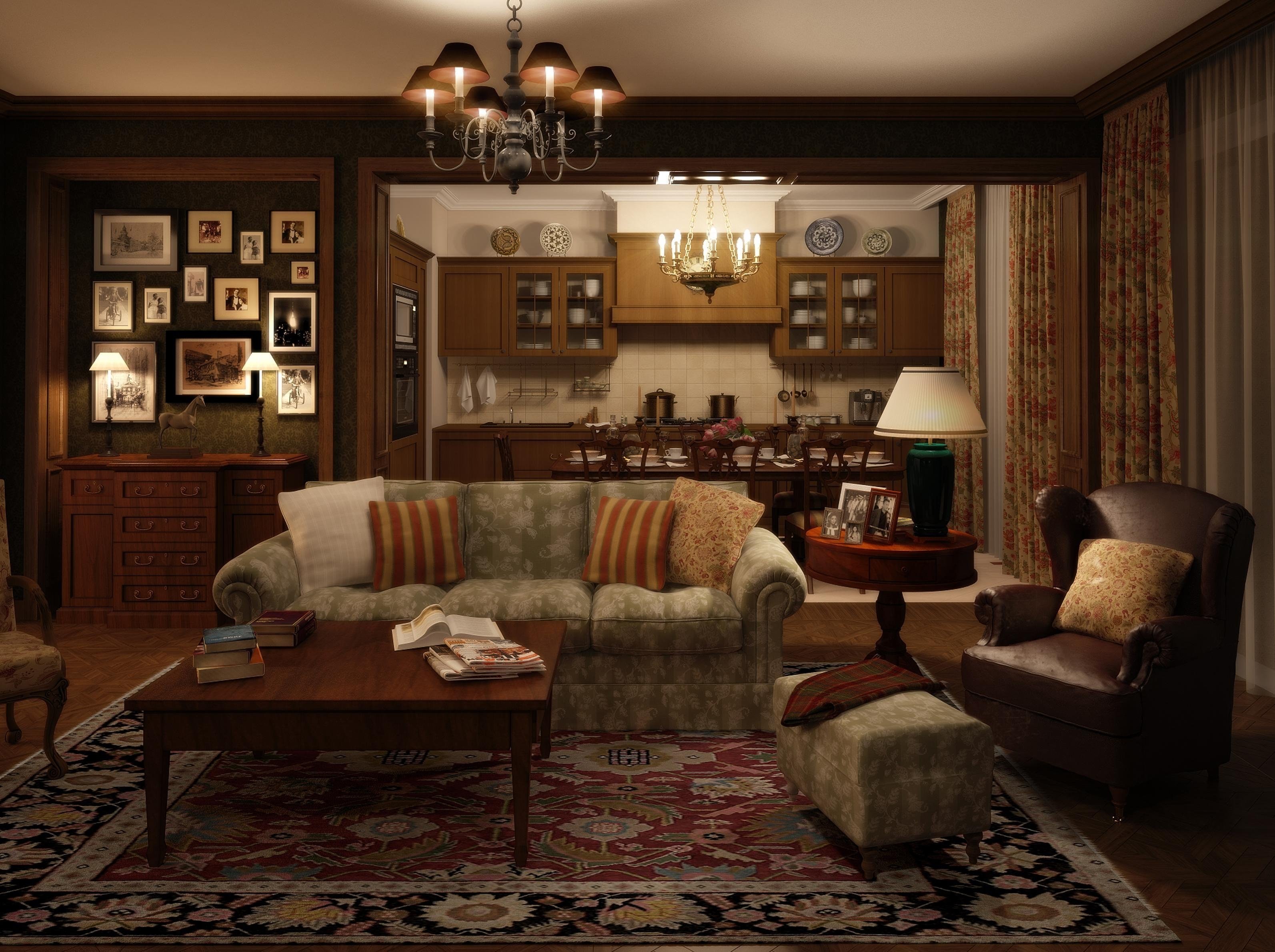 Дизайн-проект трехэтажной квартиры в английском стиле