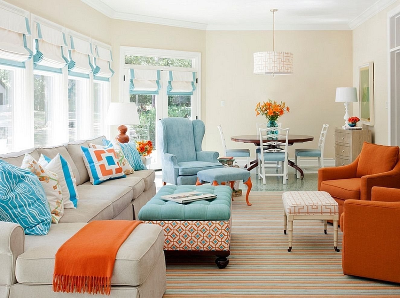 Сочетание голубого и оранжевого в интерьере