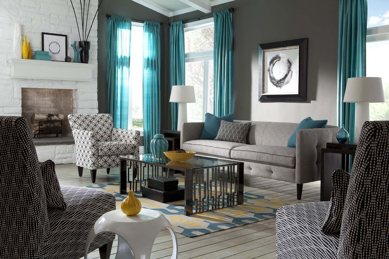 Бирюзовые шторы в интерьере