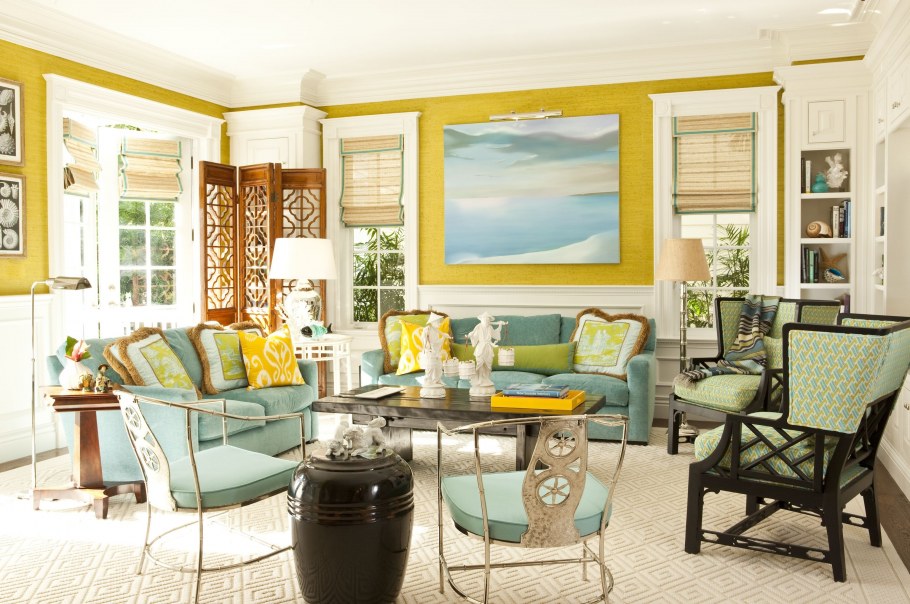Сочетание желтого и бирюзового в интерьере