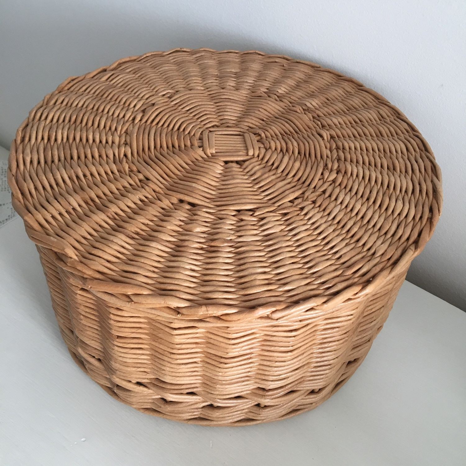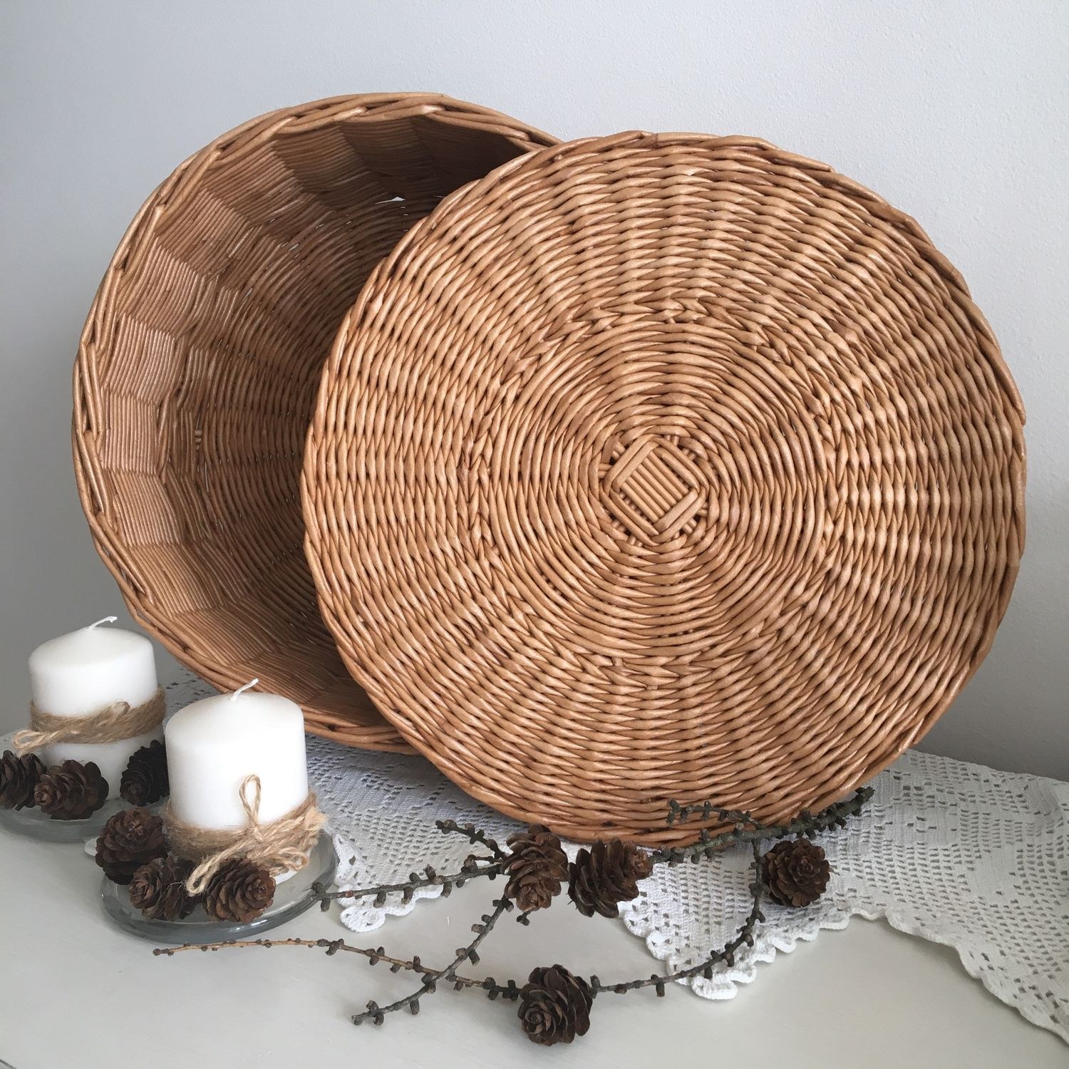 Круглые плетеные корзины с крышкой