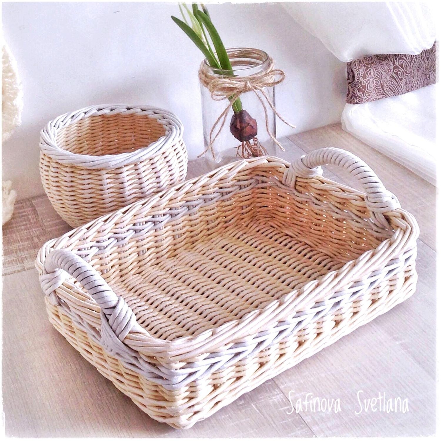 Плетеные корзины из бумажной лозы
