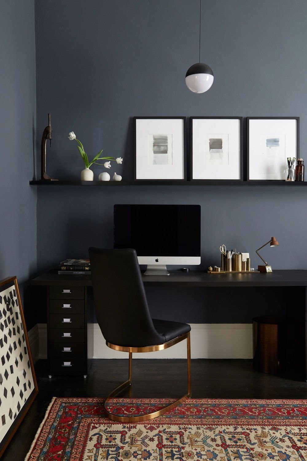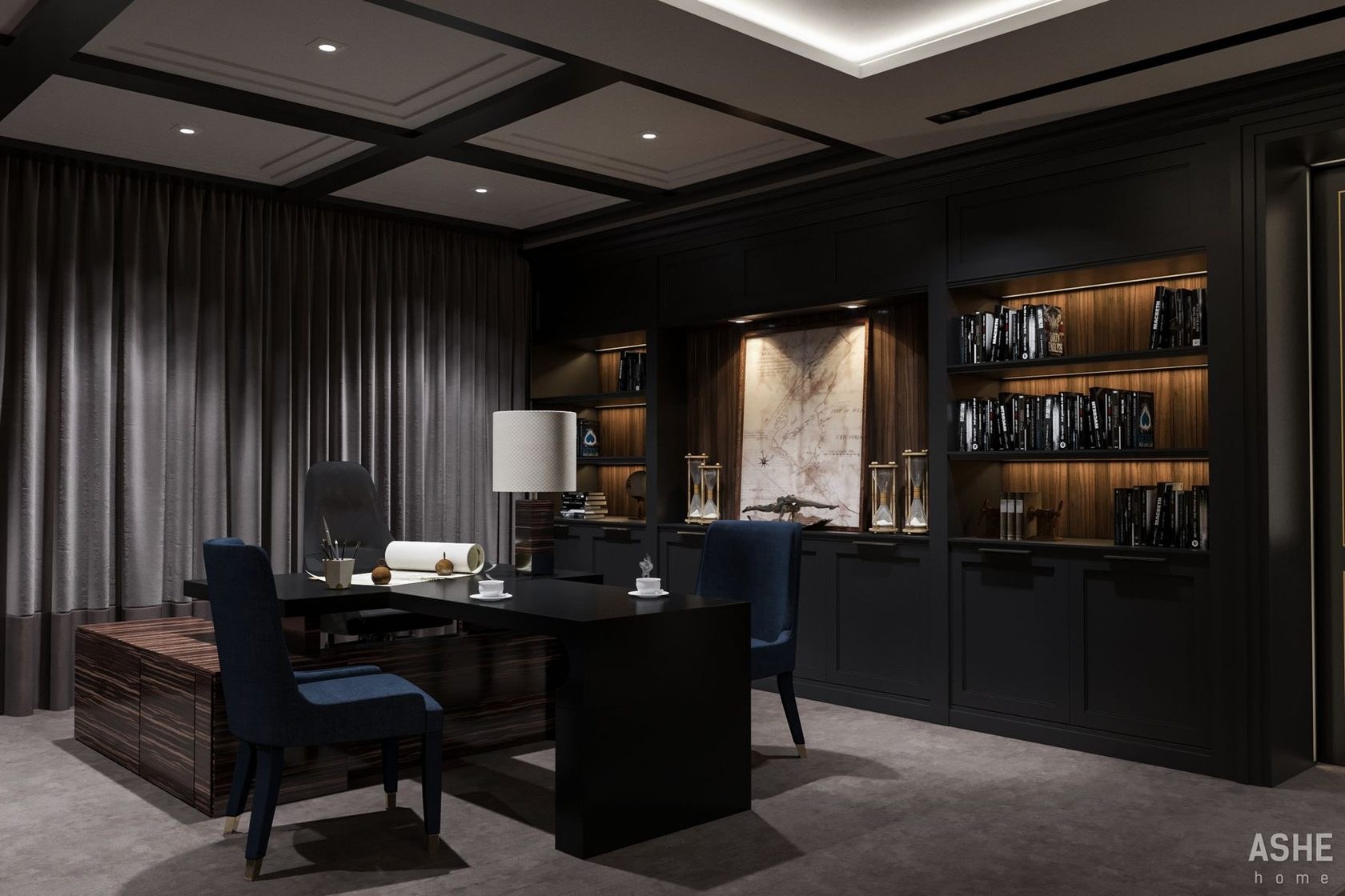 Кабинет с темными стенами