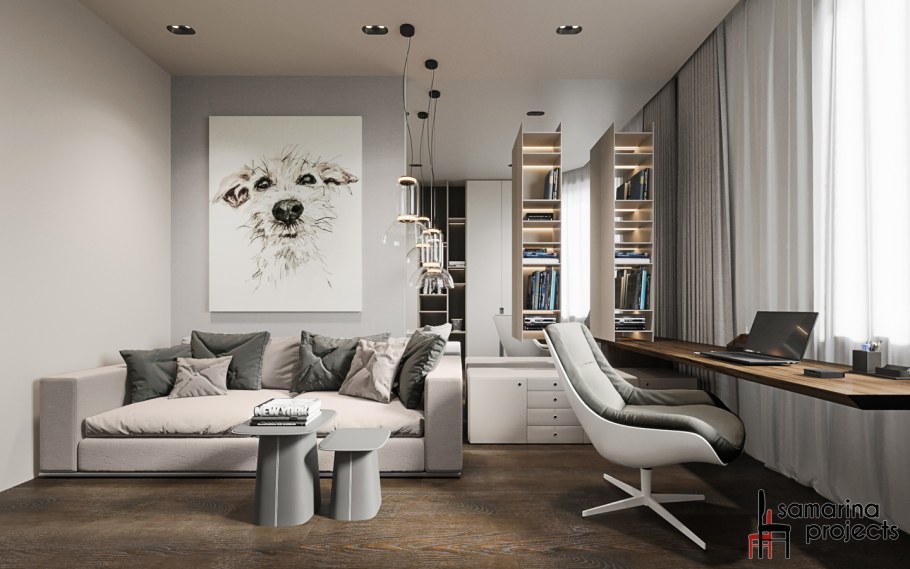 Дизайн кабинета в серых тонах