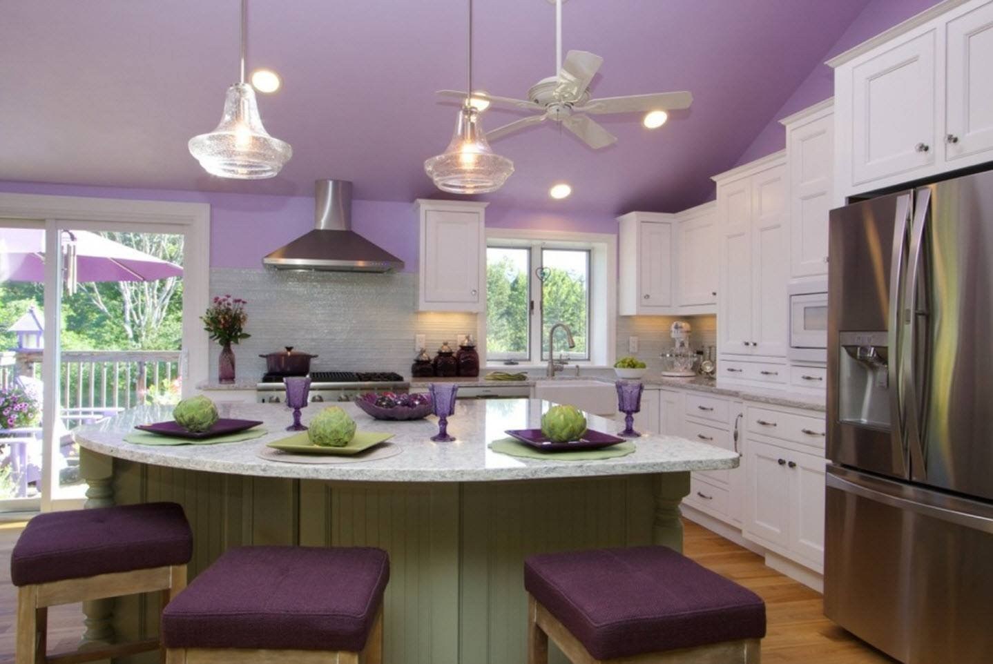Сиреневые стены на кухне