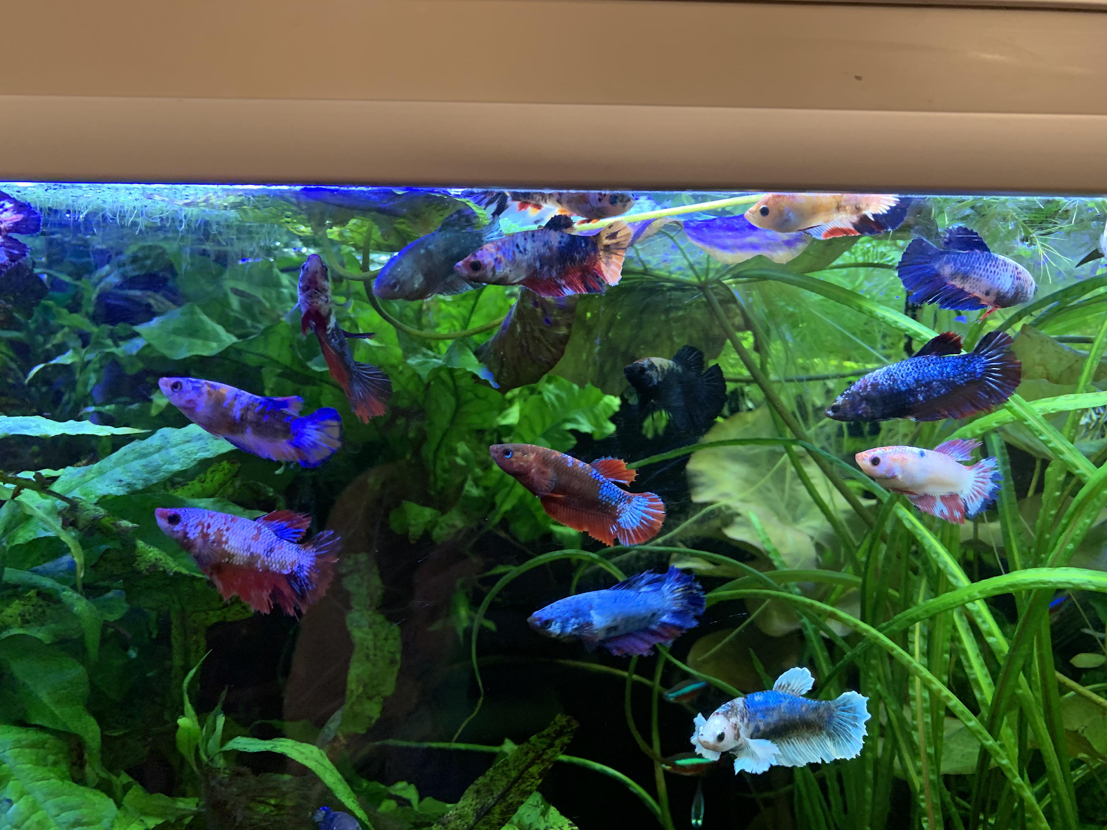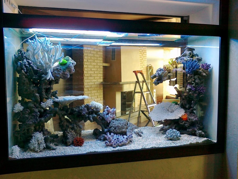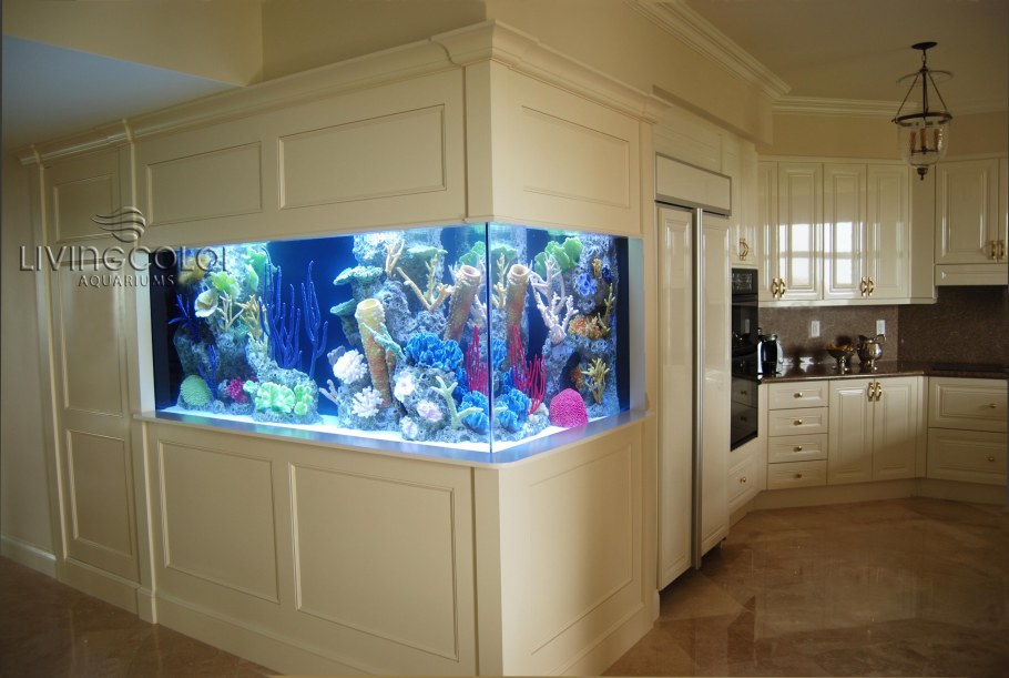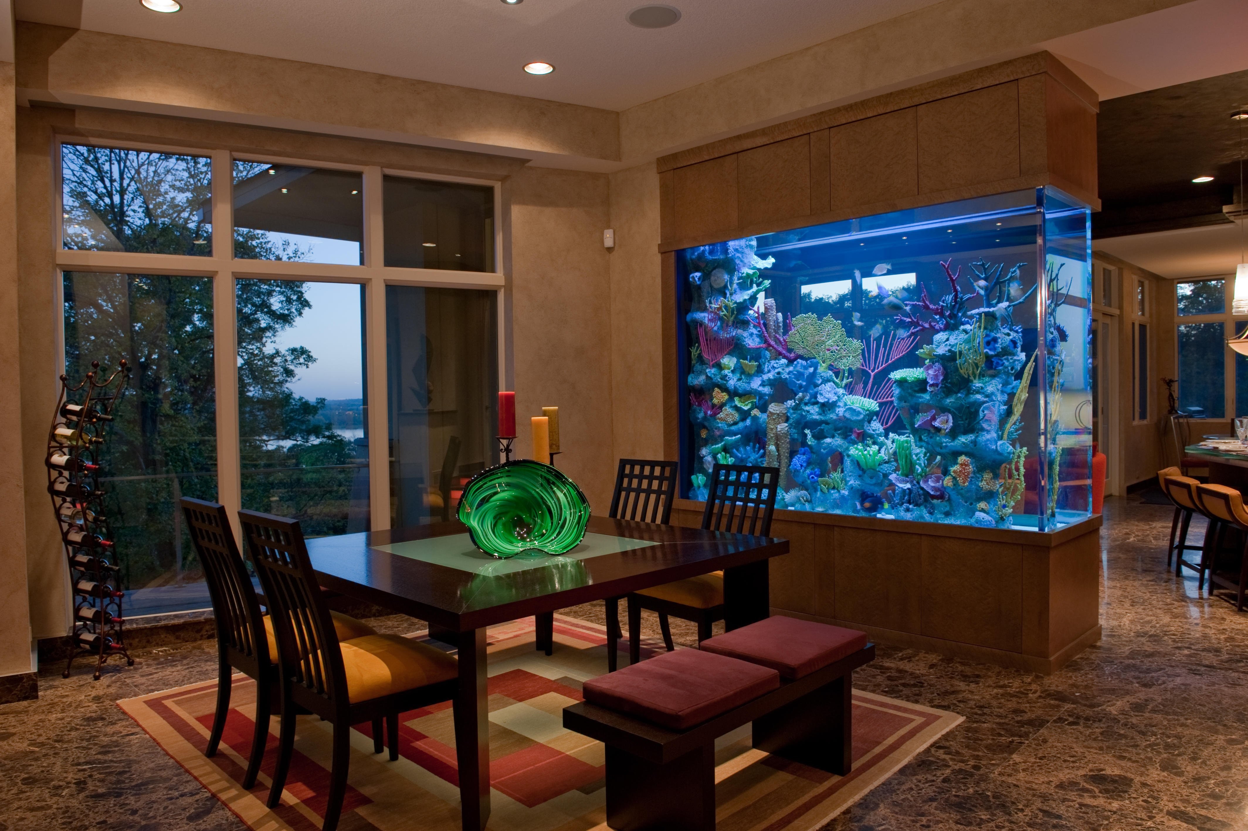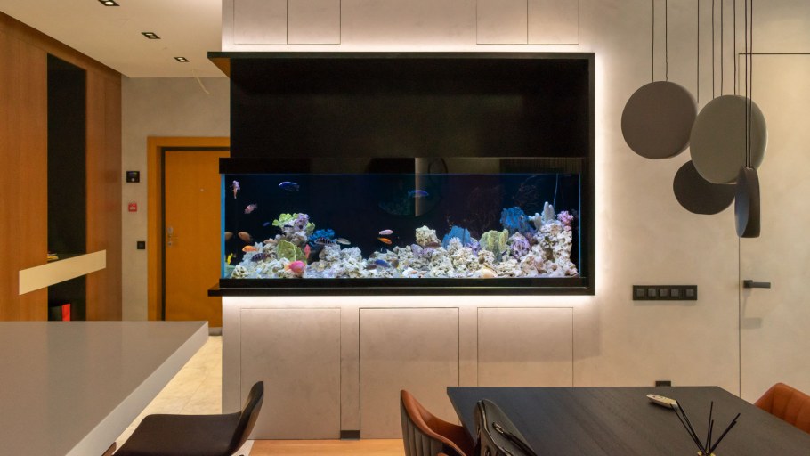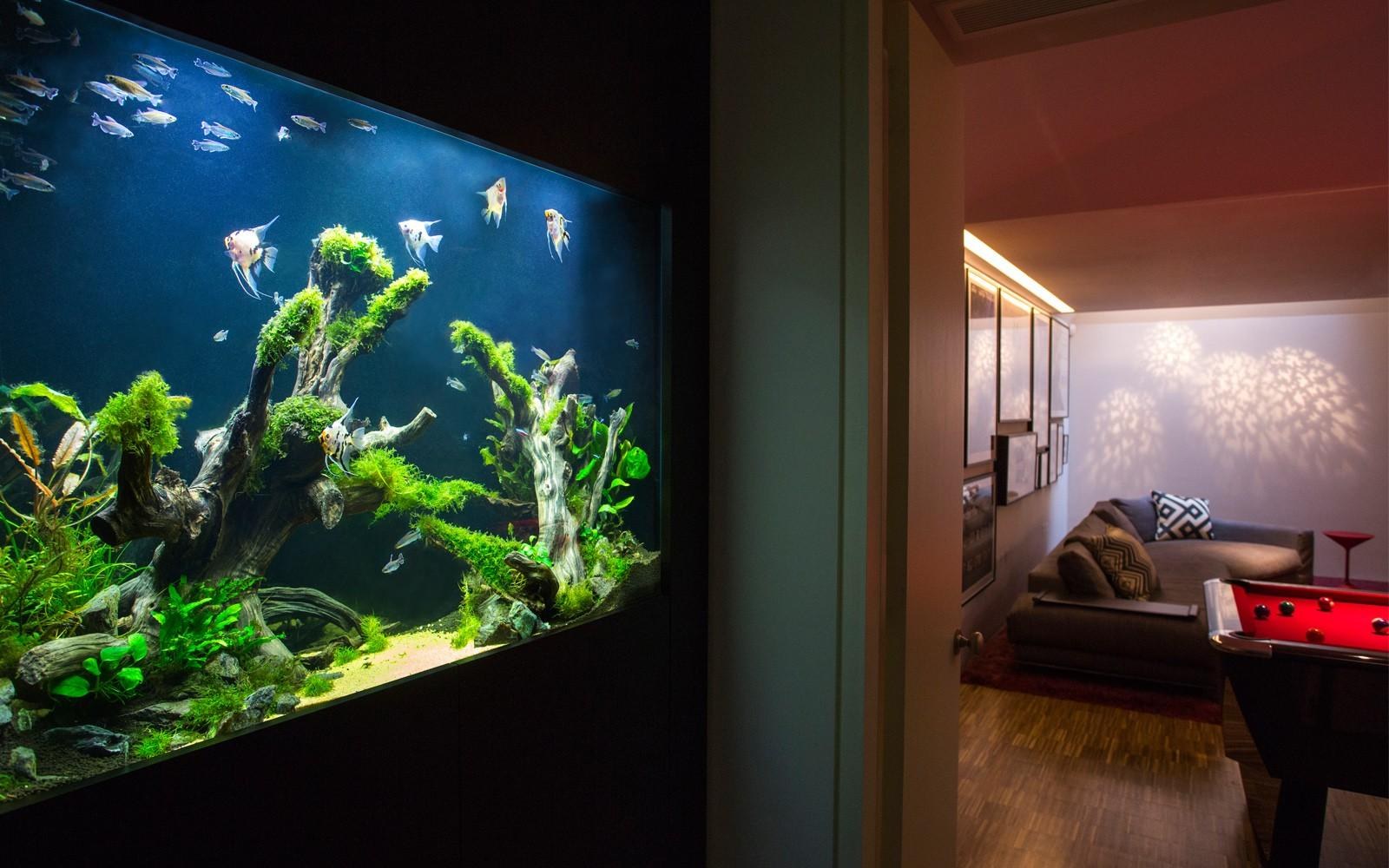 Имитация аквариума с рыбками в интерьере (43 фото)