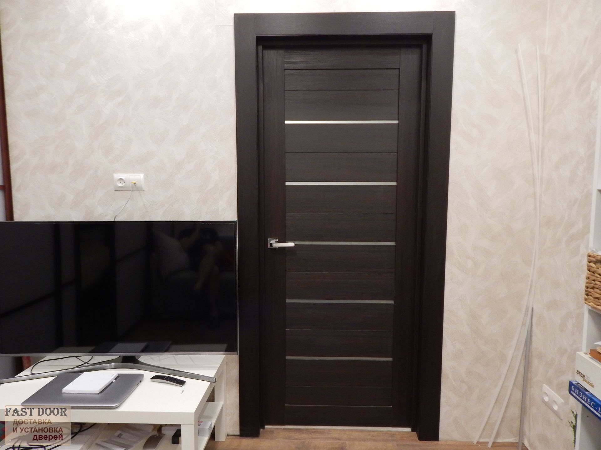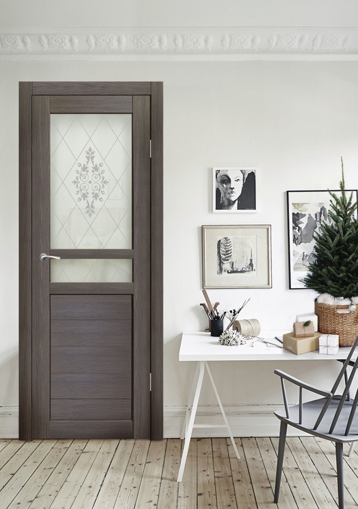 Дверное полотно МДФ ПВХ Делюкс Линнея 800+стекло BLK
