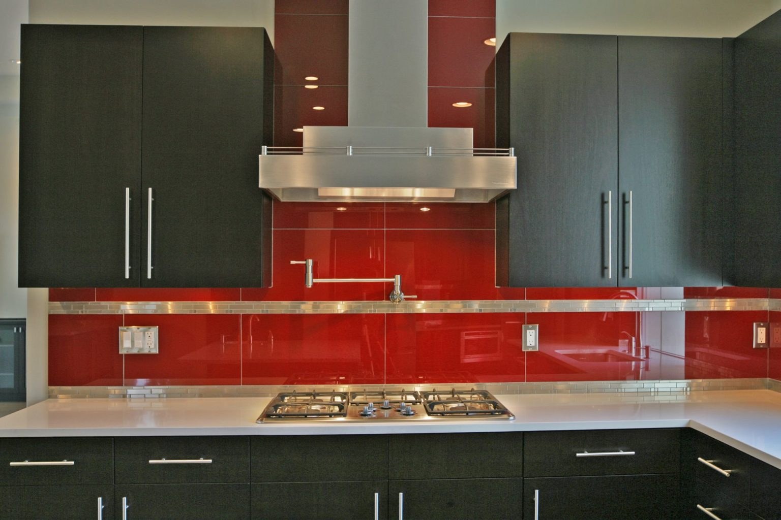 Красная мозаика на кухне фартук