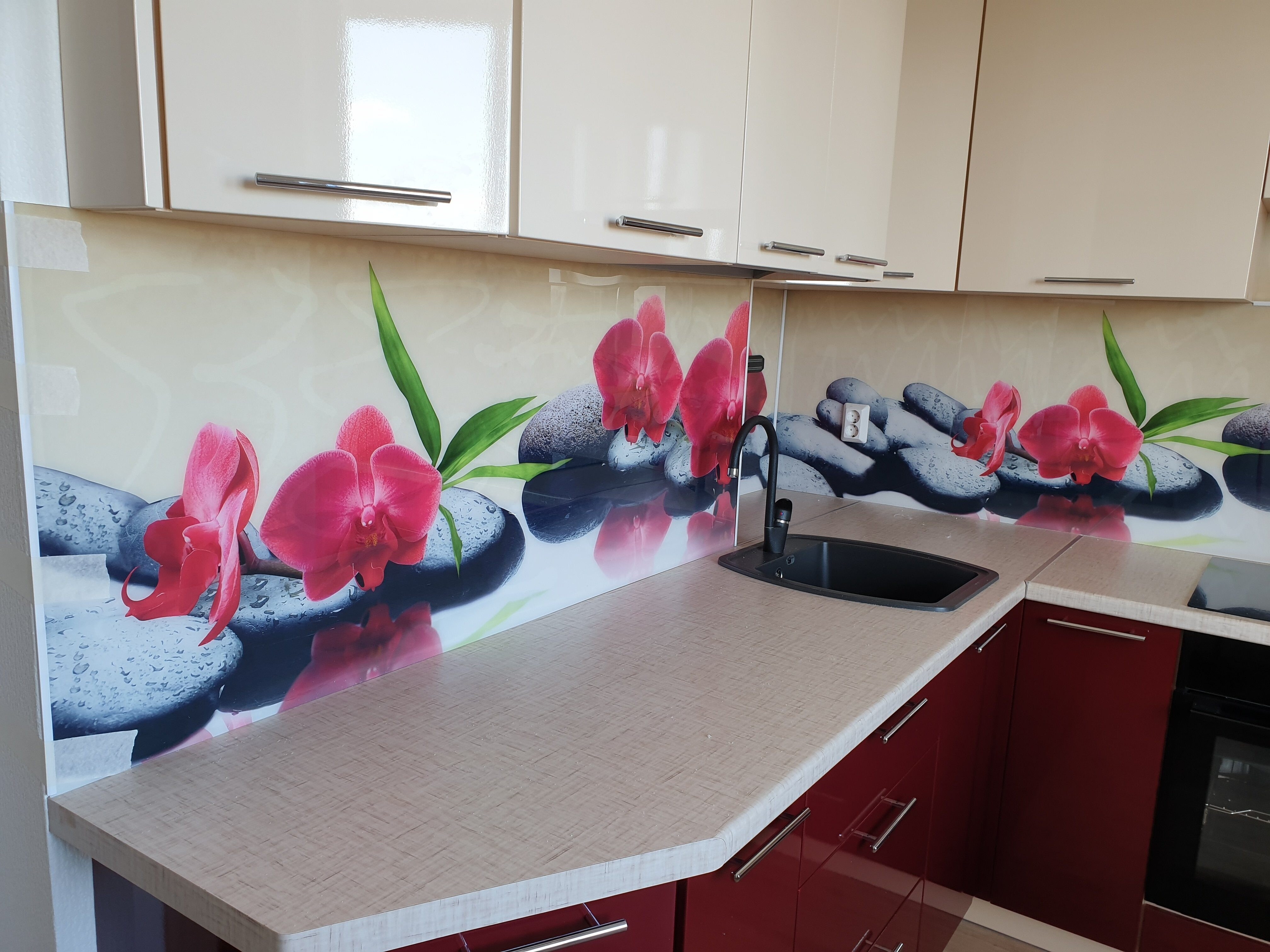 Кухня в бежево красно черном цвете