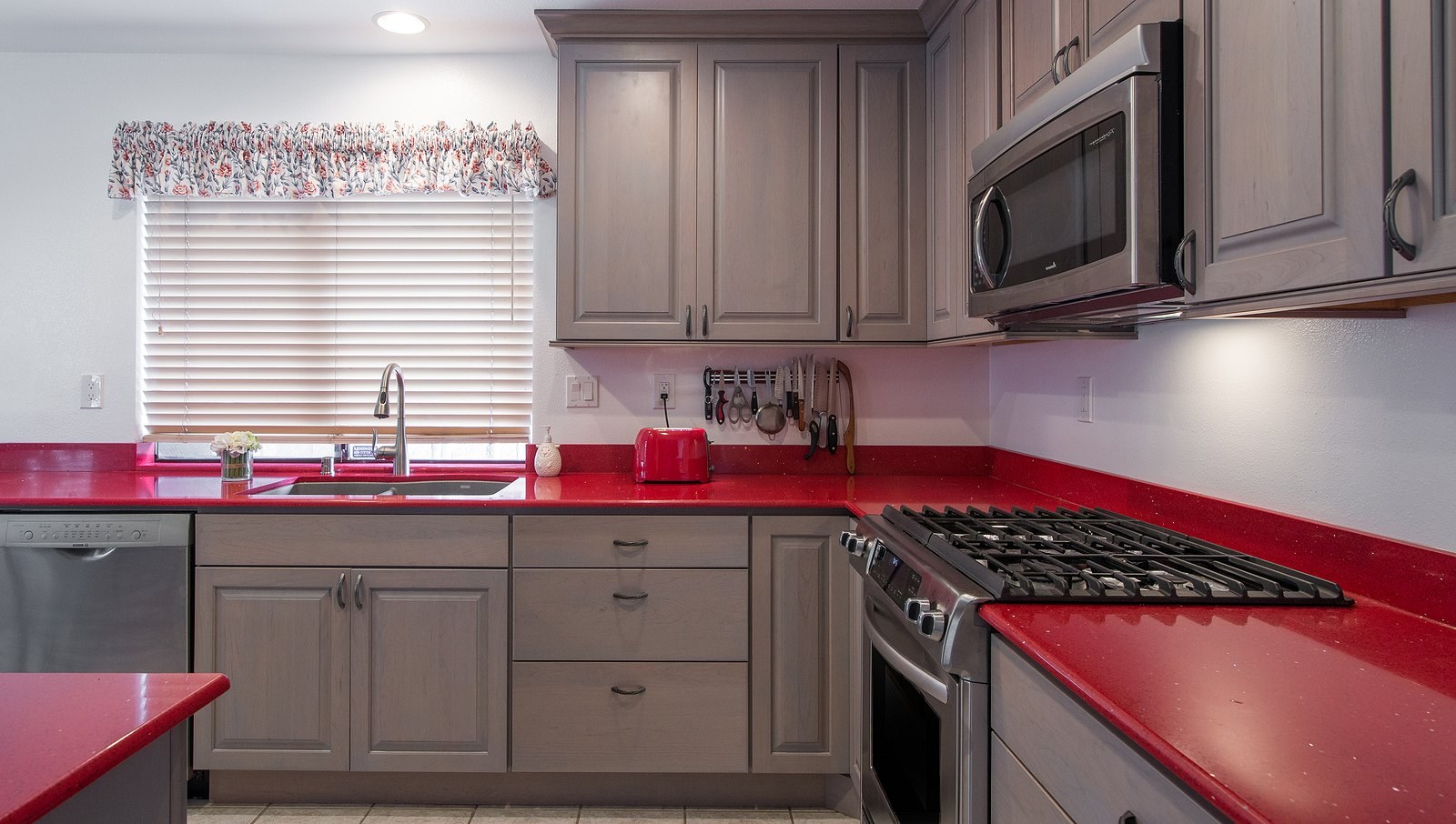 Бордовая столешница на кухне