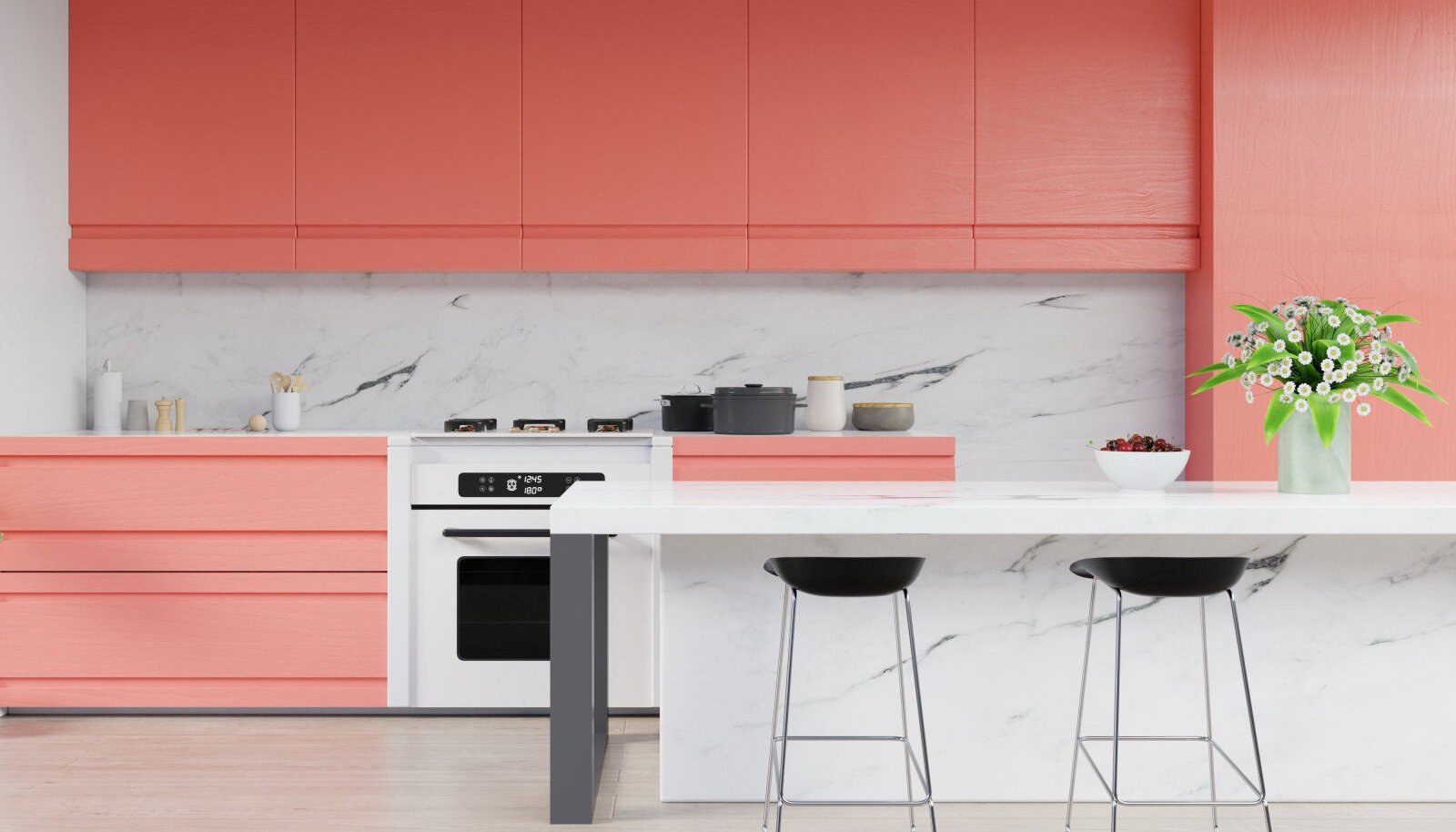 Интерьер кухни а коралловых тонах