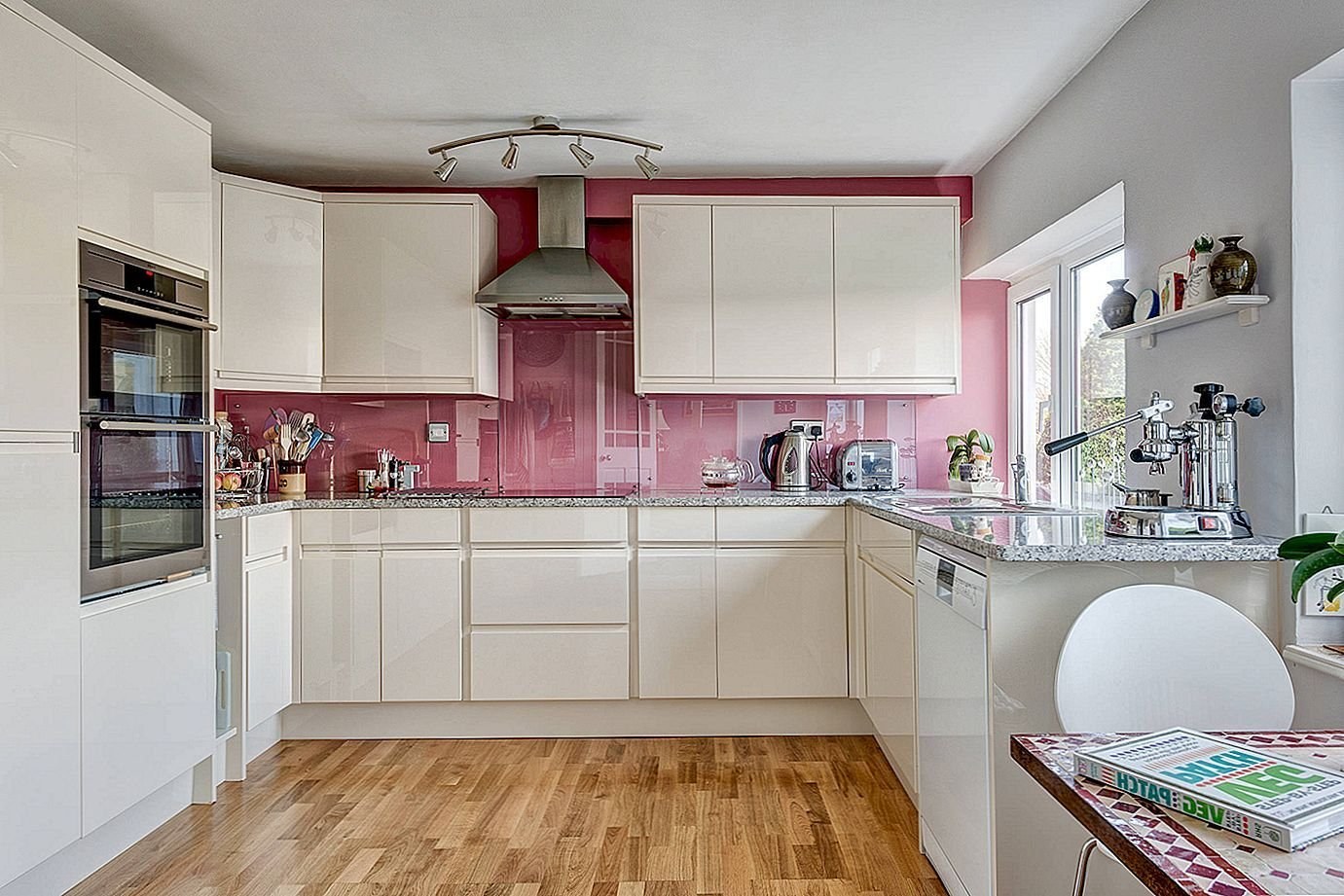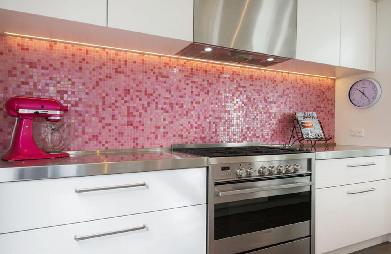 Кухня с розовым фартуком