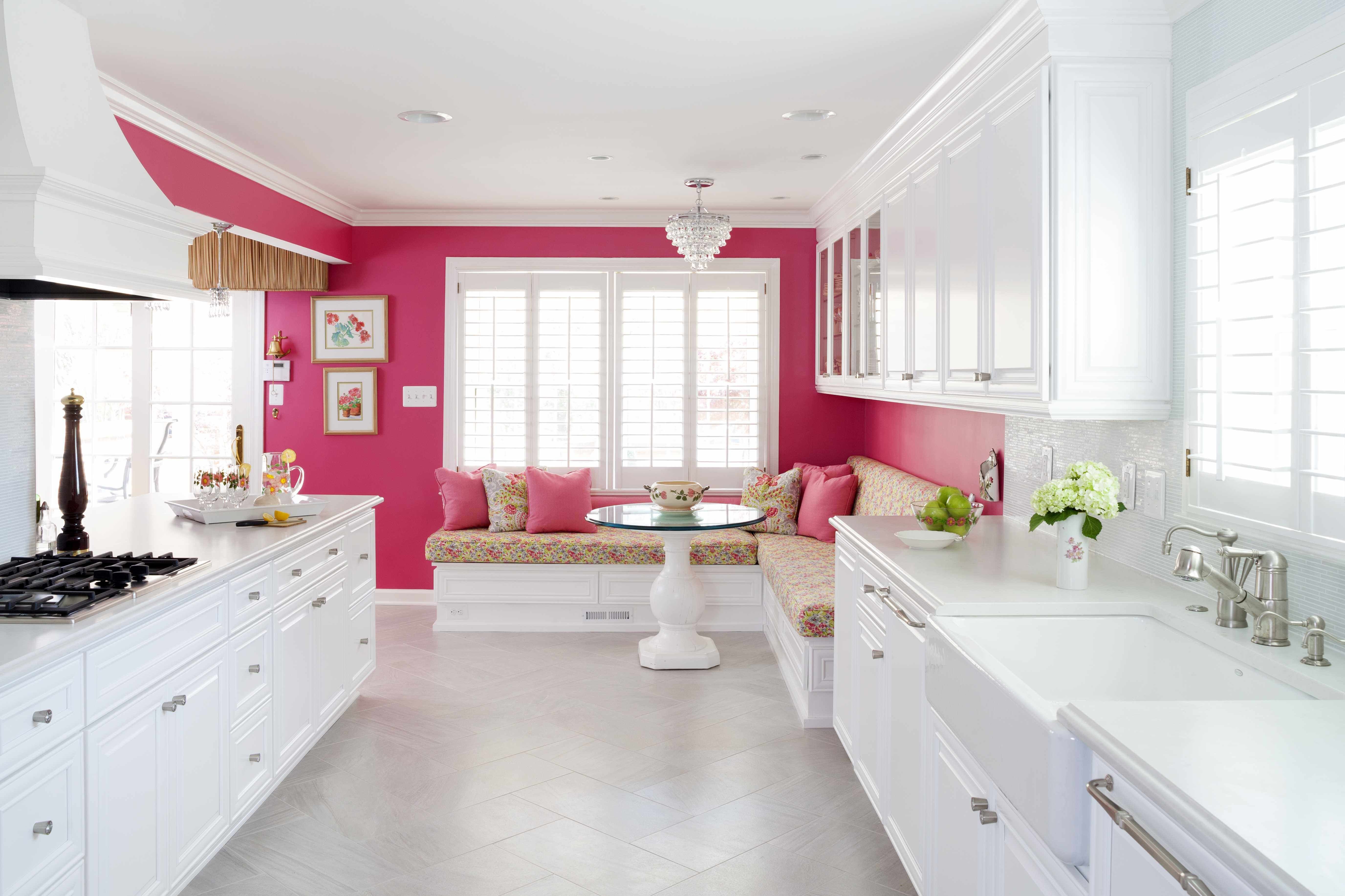 Розовые стены на кухне