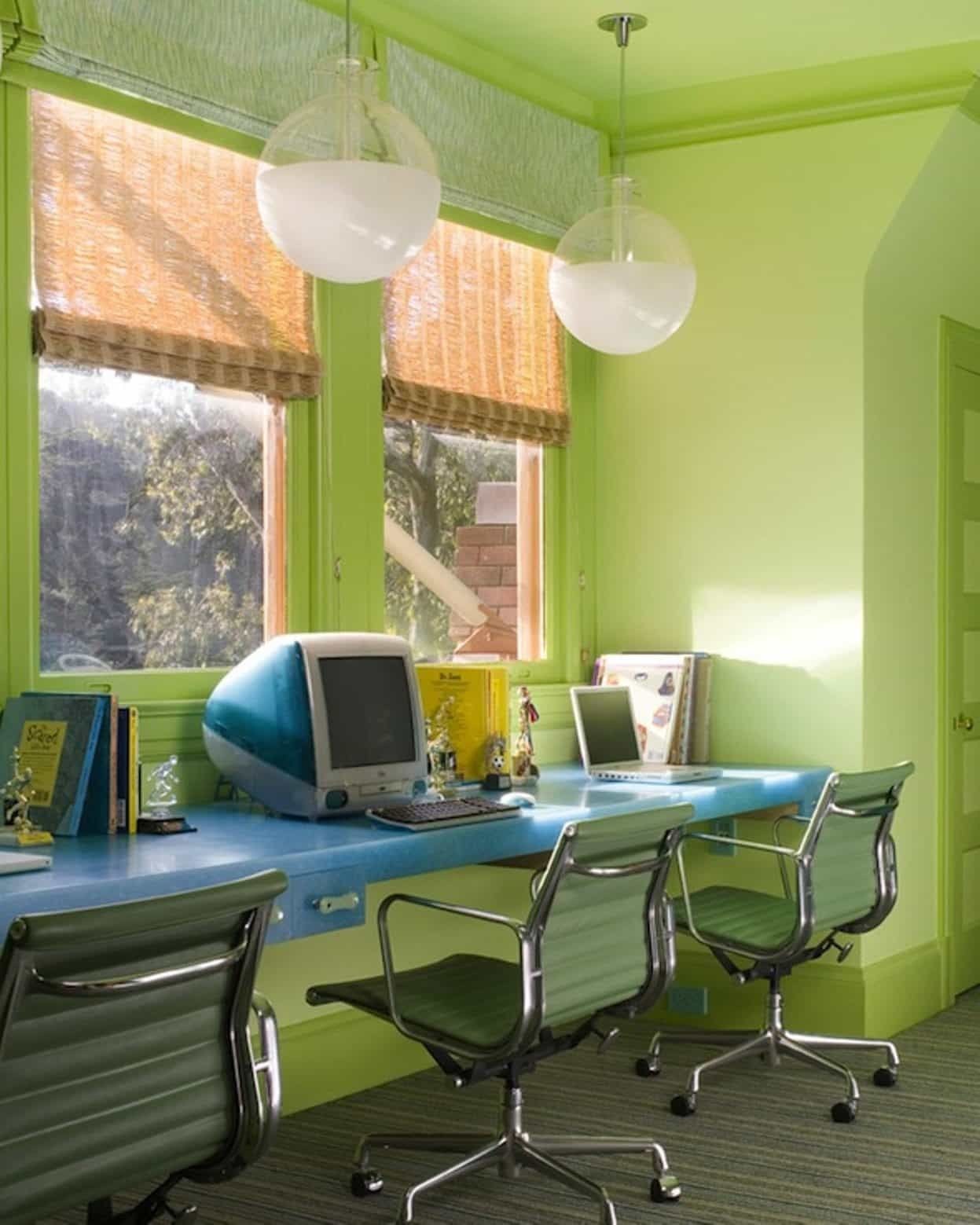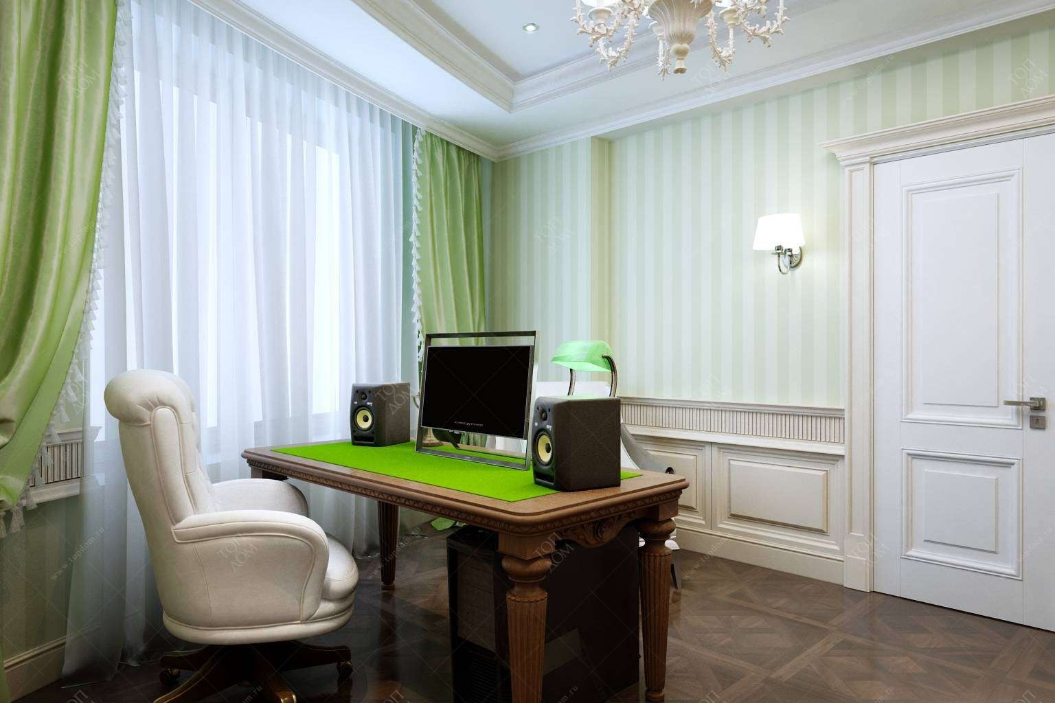 Кабинет с зеленым потолком