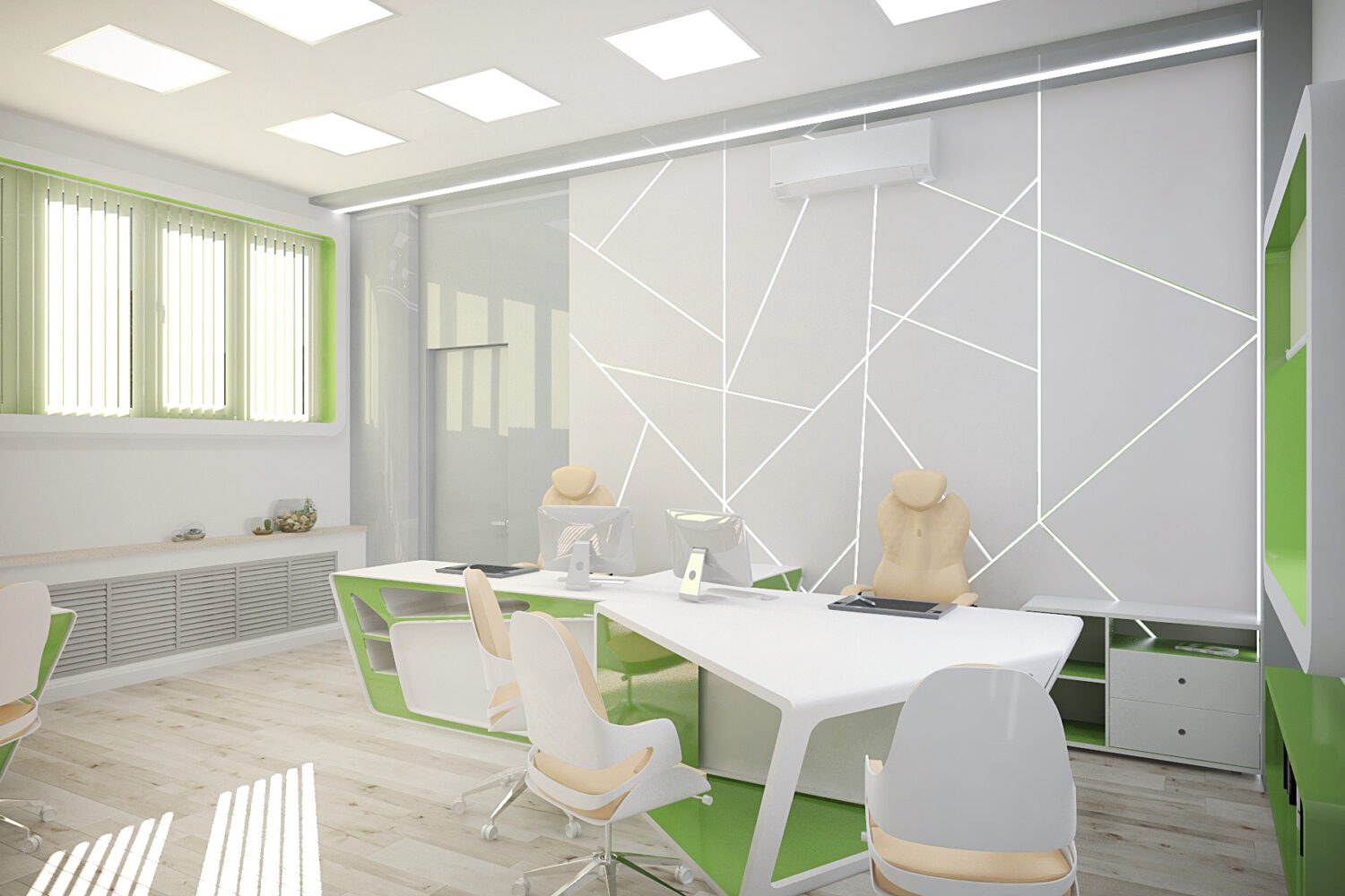 Офис в бело зеленом стиле