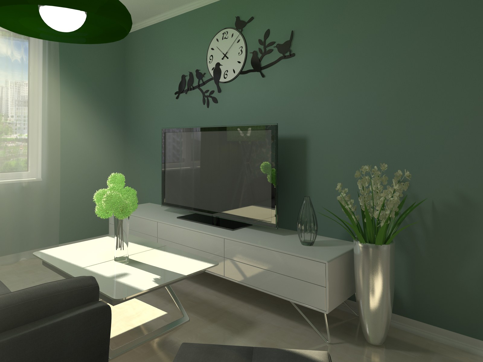 Зеленый цвет стен в интерьере
