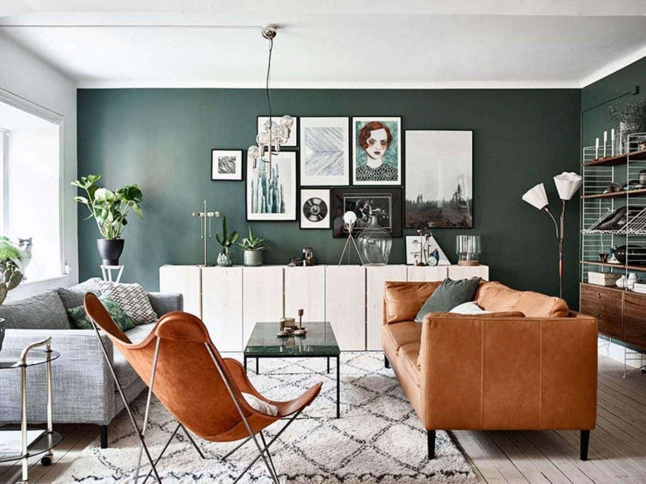 Акцентная стена в интерьере гостиной в скандинавском стиле