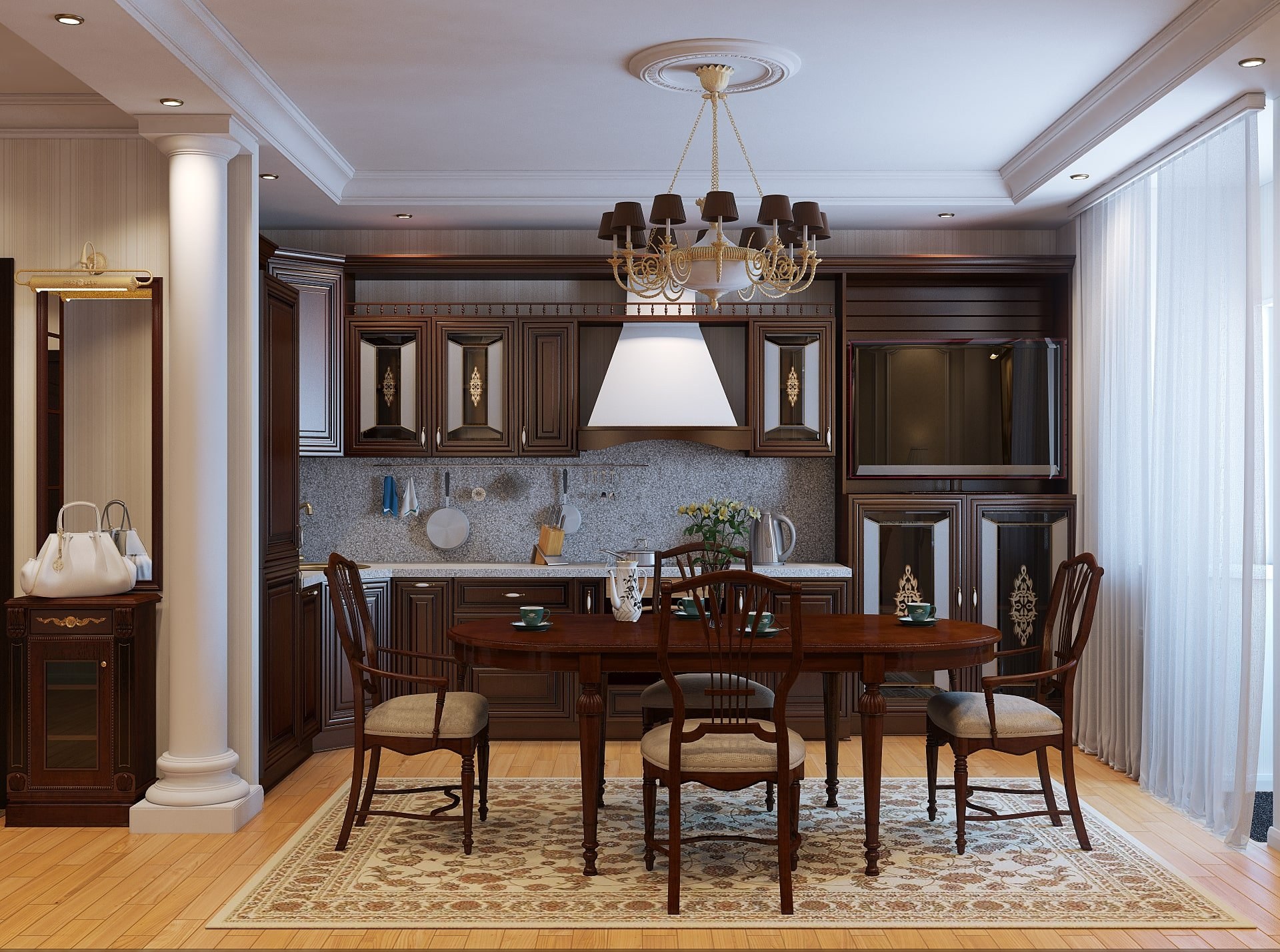 Кухня-гостиная в классическом стиле