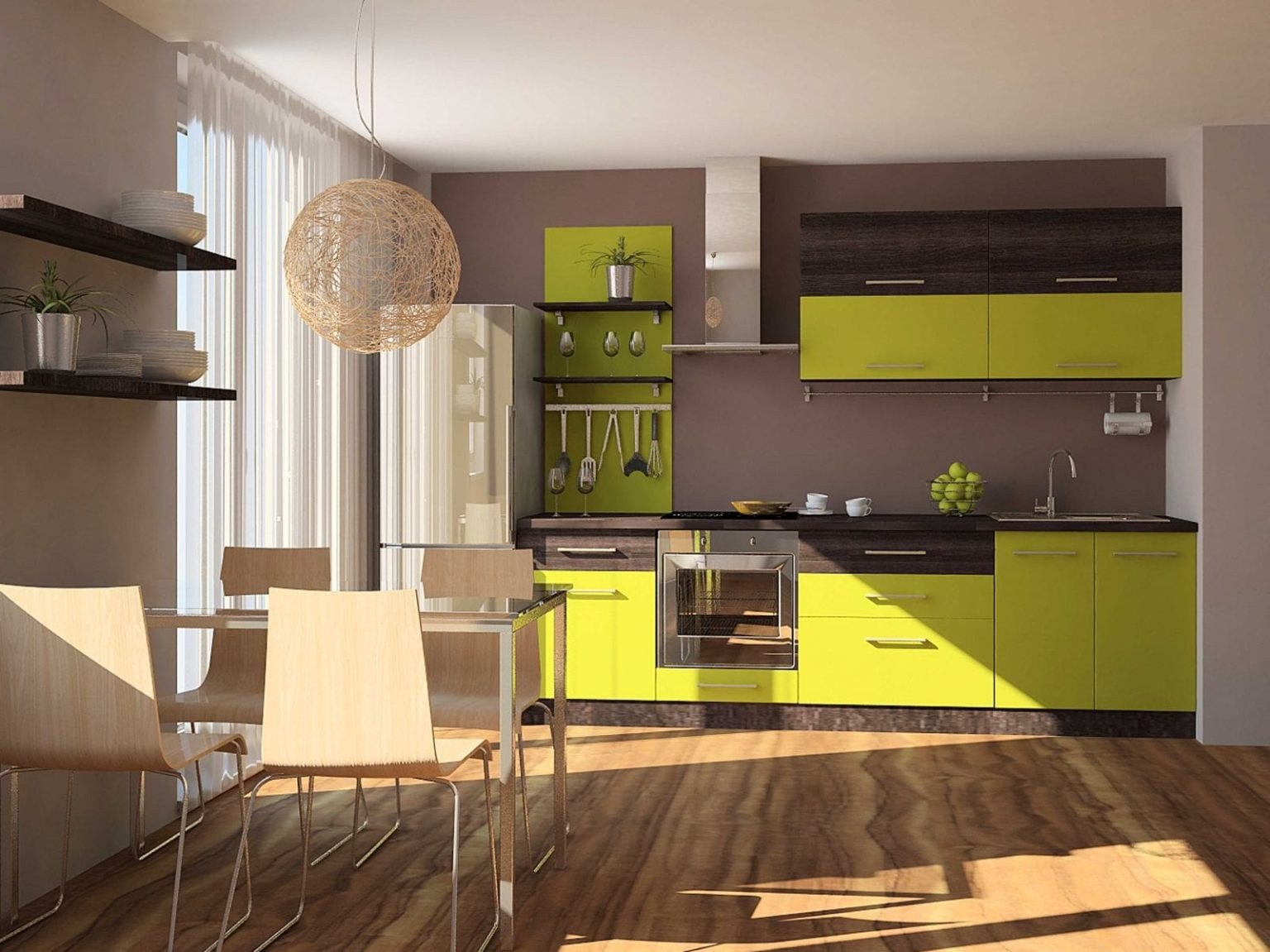 Кухня прямая дизайн хаки (46 фото)