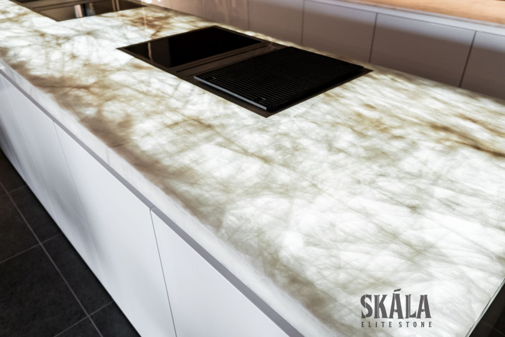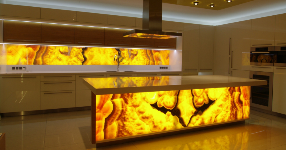Панель из оникса с подсветкой на кухне