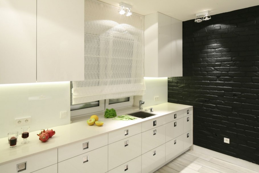 Глянцевая белая столешница с черными полосками в интерьере (51 фото)
